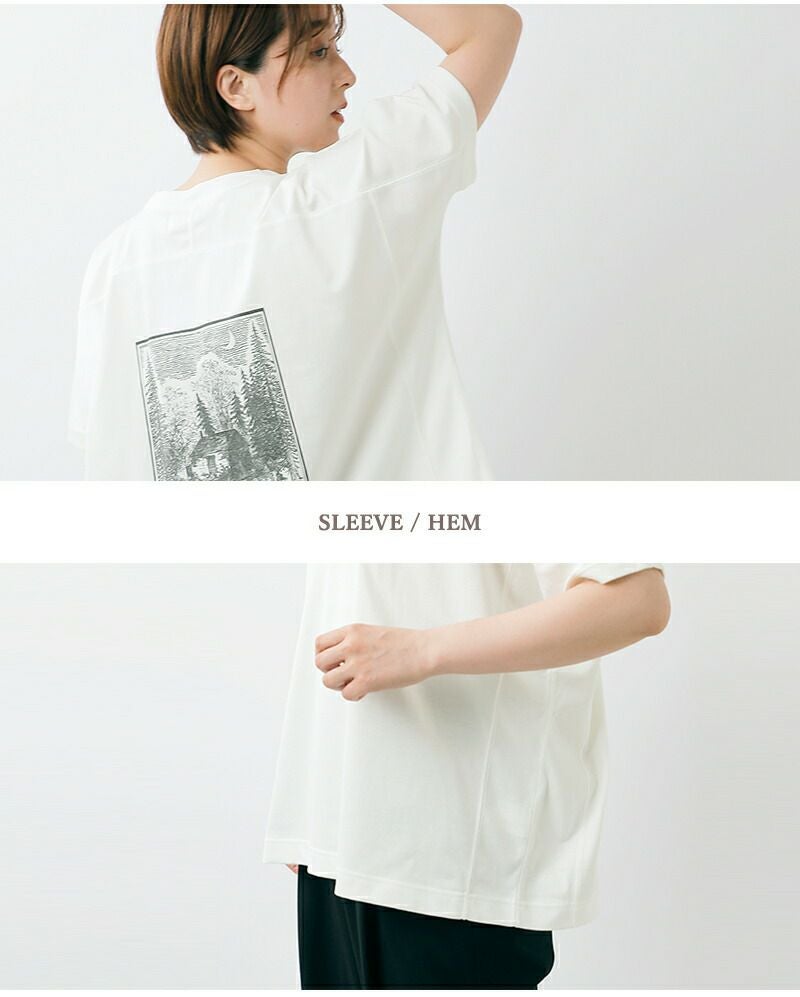 フロントは無地でミニマルに仕上げられ、バックプリントが引き立つバランスの取れたデザインの半袖Tシャツ。