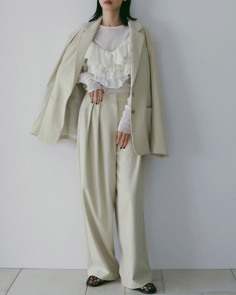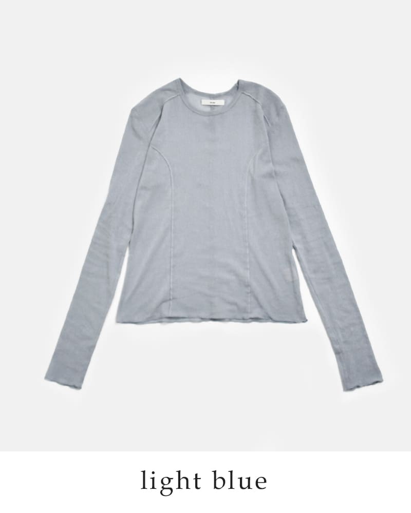 コットン素材を使用し、ドライタッチな質感と程良い透け感が特徴。チュールでありながらもカジュアルな表情を持ち、軽やかで快適な着用感です。
