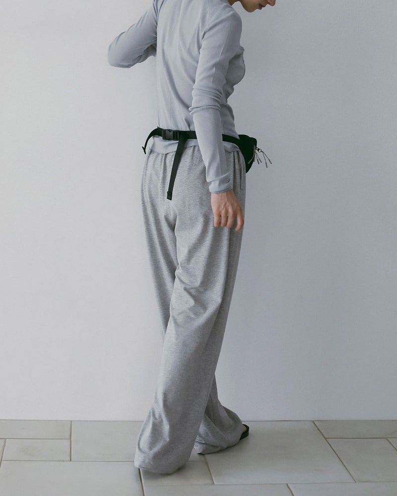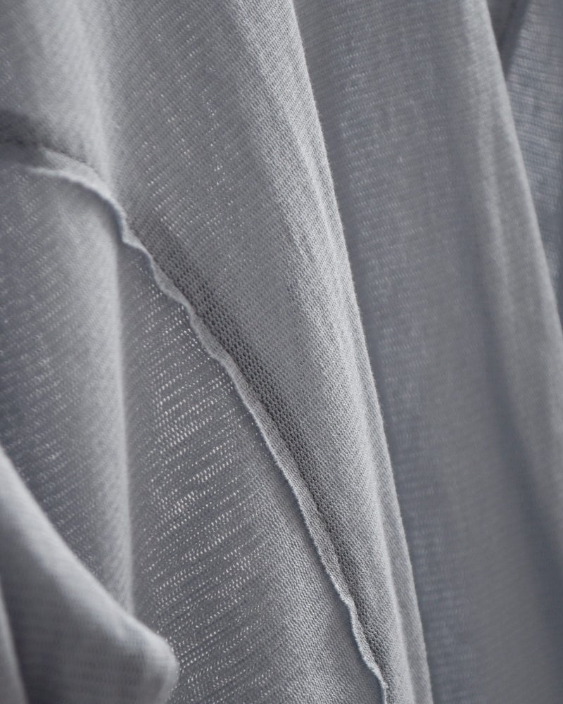 カットオフで仕上げた肩まわりや、サイドの切り替えに施したステッチがさりげないアクセントとなり、シンプルながら奥行きのある表情に。