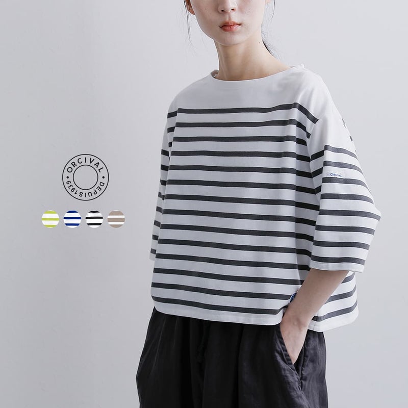 ORCIVAL(オーチバル・オーシバル)より、コットンラッセルボートネック五分袖 Tシャツをご紹介します。ORCIVALらしい爽やかなボーダーは新しい季節にぴったり!ワードローブの定番としてぜひヘビーユースしていただきたいオススメのバスクシャツです。