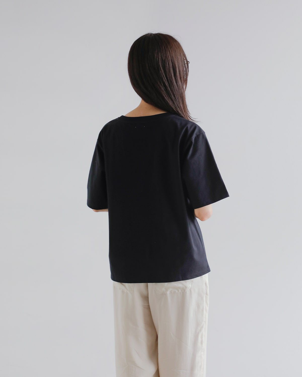 シンプルながらも洗練されたモード感が漂うデザイン。程よく体から離れる、リラックス感のあるナチュラルなシルエットが魅力です。オーバーすぎずコンパクトすぎない絶妙なサイズ感で、1枚でもボトムインしても美しく着こなせます。
