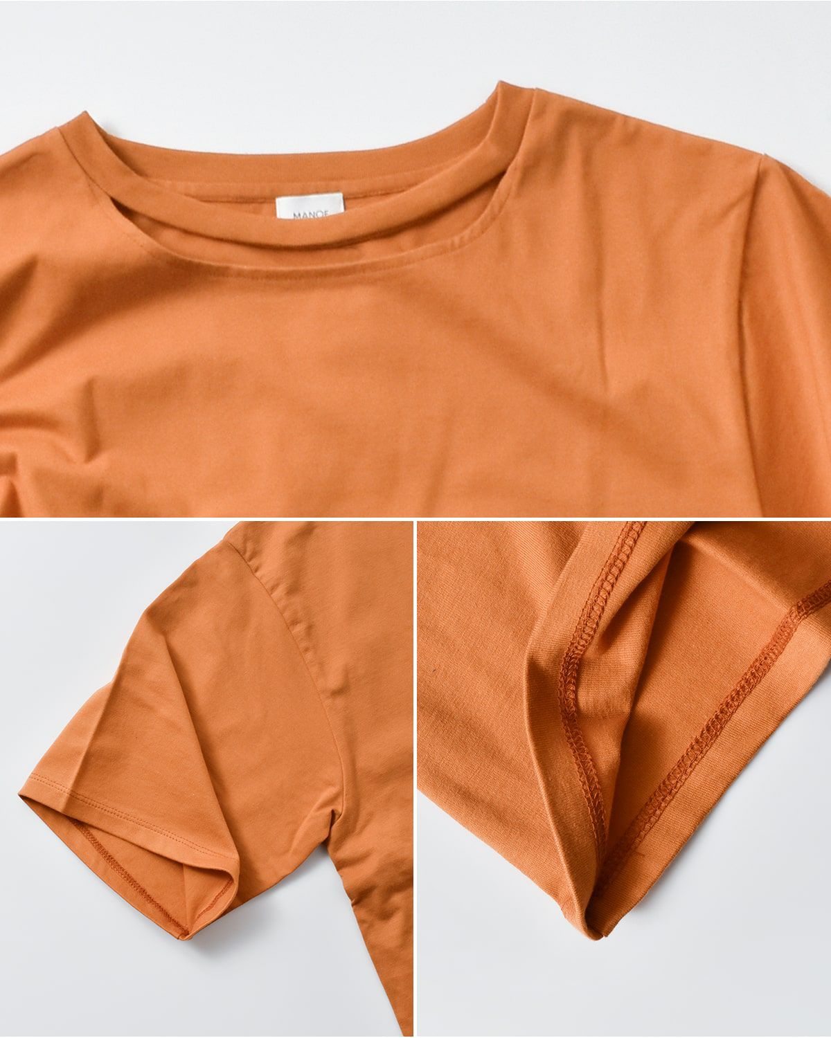 コットン100%のしなやかで上品な風合いの生地を使用。肌触りが柔らかく、通気性にも優れているため、暑い季節でも快適な着心地をキープします。ナチュラルな表面感で、カジュアルながらも上品な印象に。