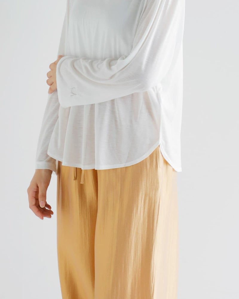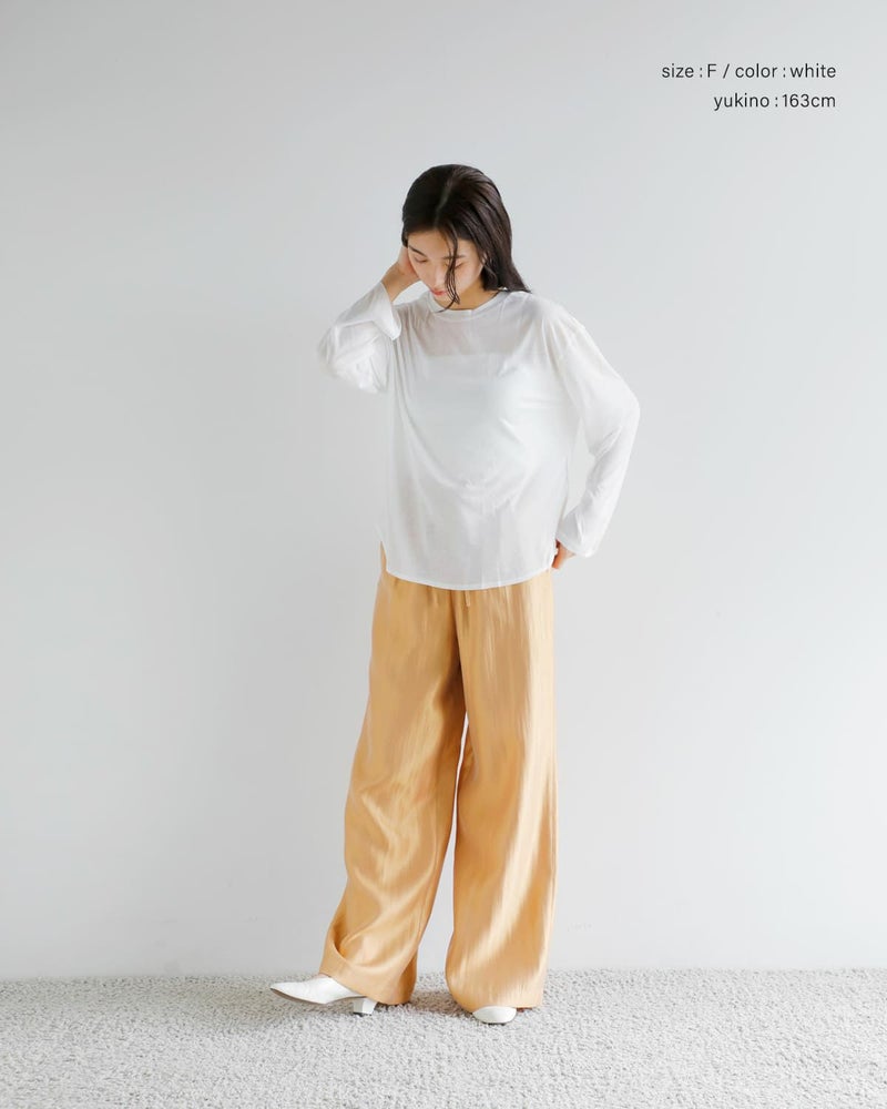 シアー感のあるオーバーサイズのロングTシャツ。さらりと軽やかな着心地で、冷房対策や、日焼け対策にも使用いただけます。ブラトップやキャミソールをレイヤードして着ていただけます。