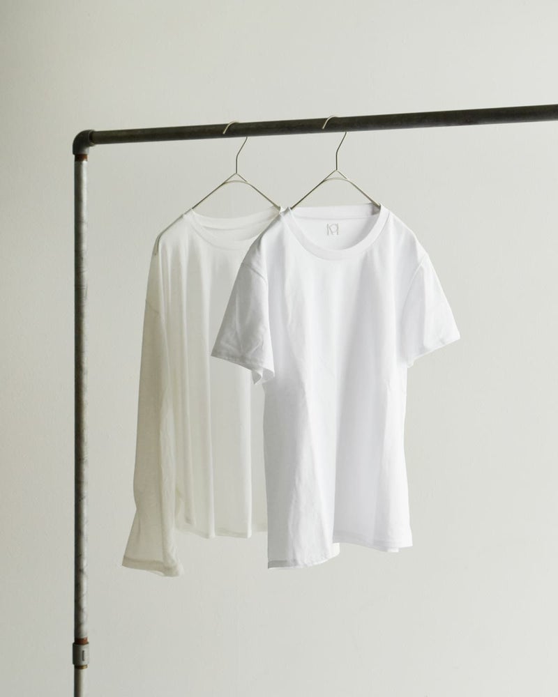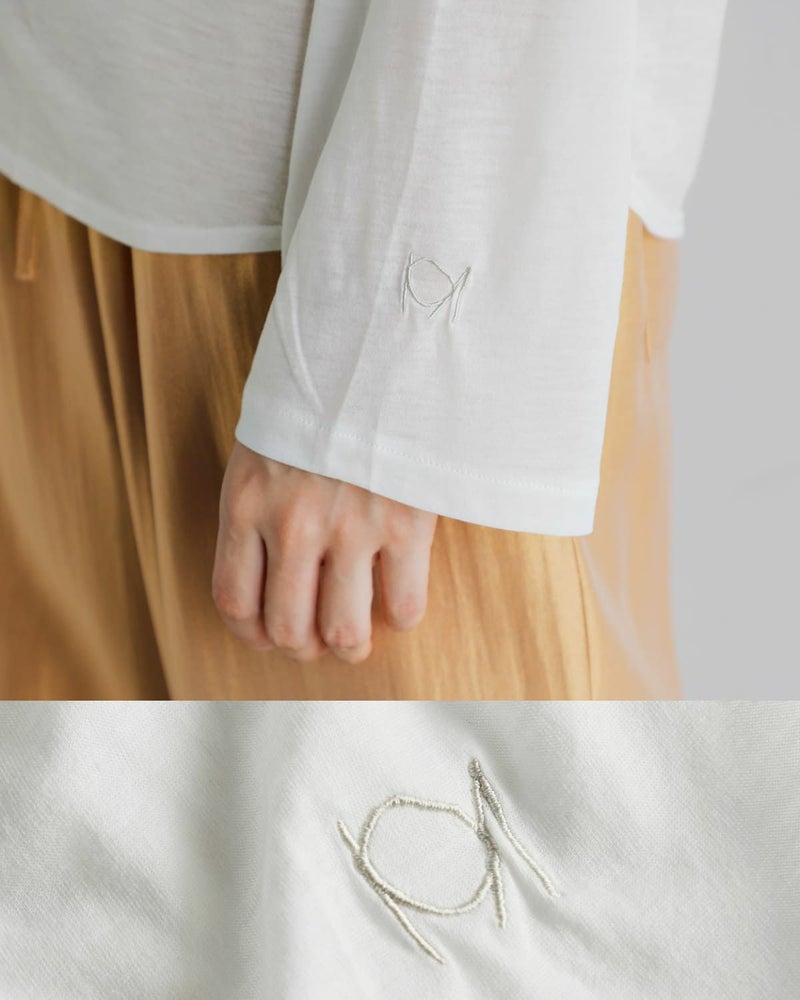 サイズ感にこだわったベーシックなTシャツと、シアー感のあるオーバーサイズなロンTのセット。それぞれロゴの刺繍も入っており、シンプルですが特別感のあるアイテムに。単体でも、ロンTとTシャツを両方重ねても、また、他アイテムとのレイヤードでも使えて、合わせ方は自由自在。さまざまなスタイリングを楽しめるモダンで洗練されたアイテムです。