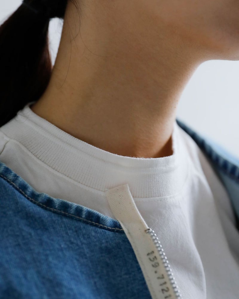 Tシャツという最もベーシックなアイテムを、構造と工程の視点から捉え直した一着です。装飾や過剰な加工に頼らず、編み立てや縫製そのものが生み出す違いをそのままデザインとして成立させています。シンプルであるからこそ、素材選びと構造の積み重ねが輪郭として現れることを大切にしています。