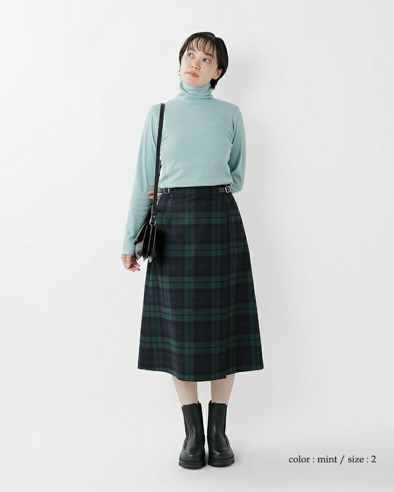 タートルネックで首元を包み込むので、秋から春までロングシーズンで活躍します。重ね着も様になります。