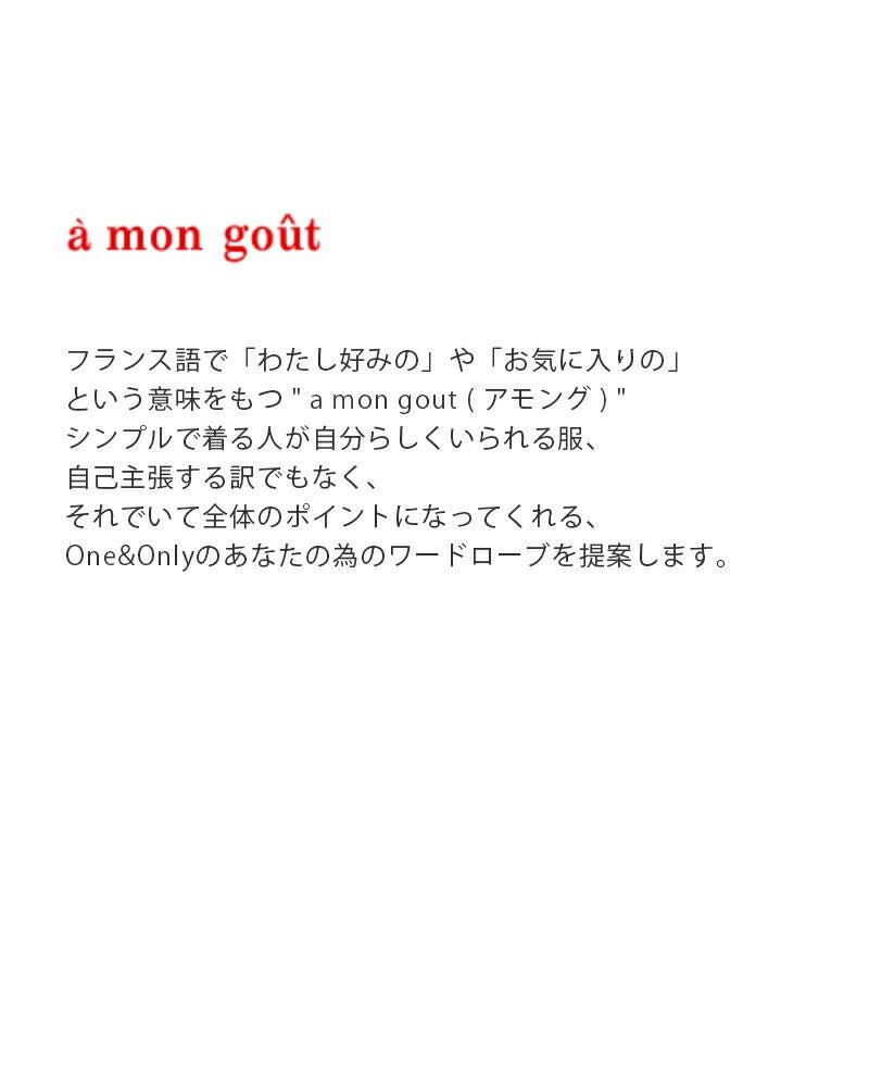 フランス語で「わたし好みの」や「お気に入りの」 という意味をもつ " a mon gout ( アモング ) " シンプルで着る人が自分らしくいられる服、 自己主張する訳でもなく、 それでいて全体のポイントになってくれる、 One&Onlyのあなたの為のワードローブを提案します。