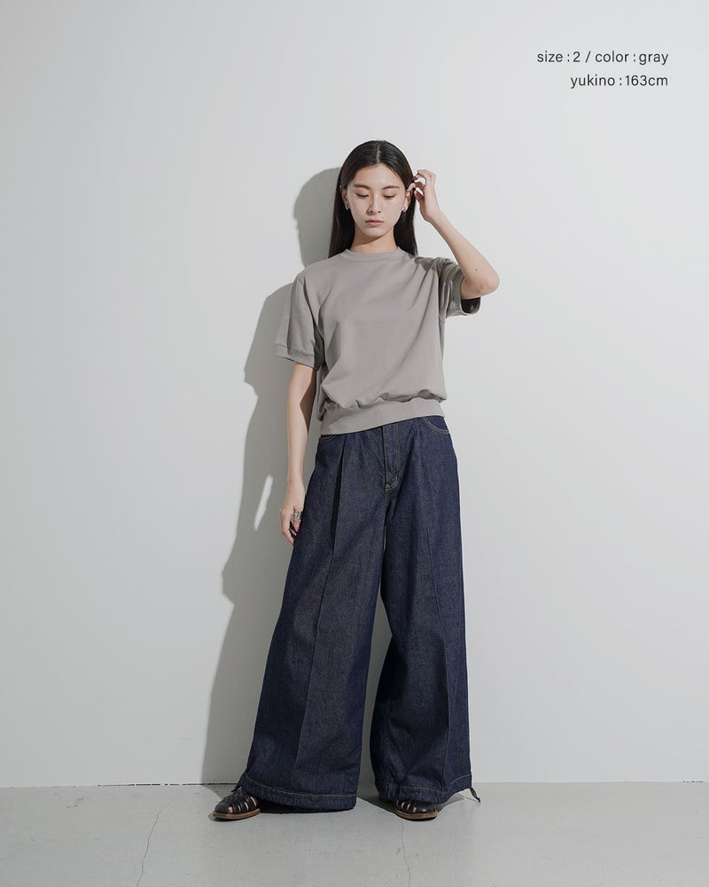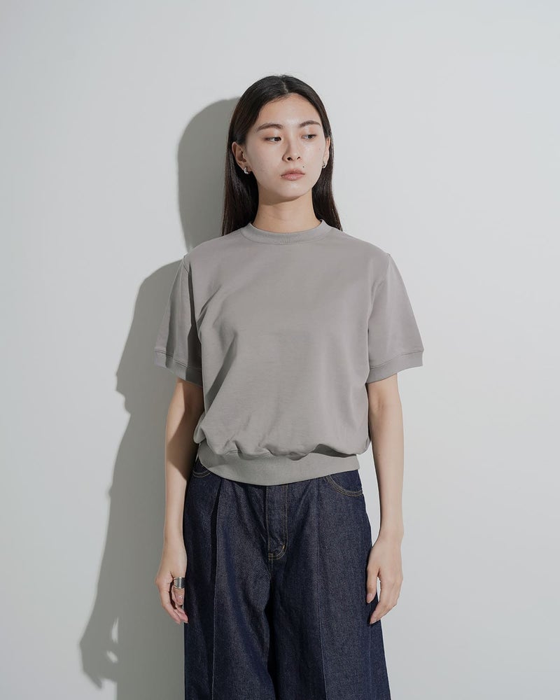 裾は幅広のリブ生地で切り替え。ボディの溜まりが出来て、ゆるっとしたシルエットが可愛らしいです。