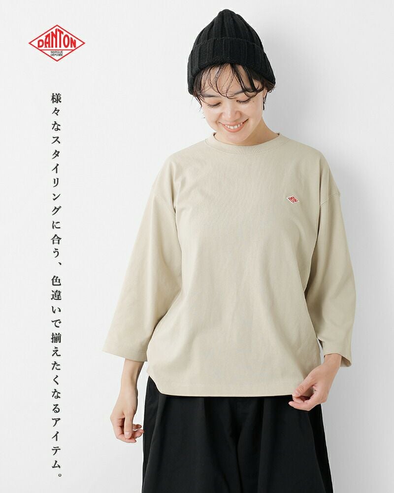 DANTON(ダントン)よりオープンエンドジャージー クルーネック 7分袖 プルオーバーのご紹介です。ゆったりとしたワイドなボディにコンパクトな着丈が特徴のクルーネック7分袖Tシャツ。すとんと落ちたドロップショルダーに、リブ編みなどのないプレーンな袖口でリラックス感のあるスタイルに仕上がります。トレンドに左右されないミニマルな無地デザインで、様々なスタイルにマッチする汎用性の高いアイテムです。豊富なカラーバリエーションも魅力のひとつです。