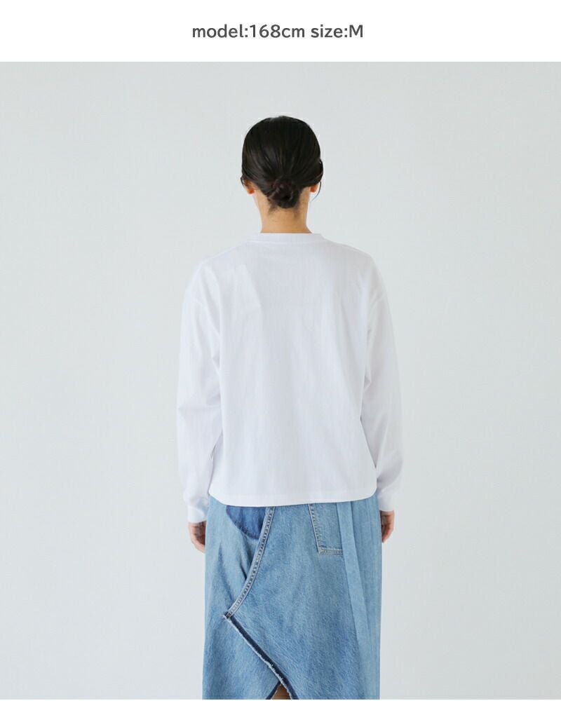 ゆったりとしたボディとコンパクトな袖が特徴。レイヤードのインとしても、トップスとしても使いやすいサイズ感。