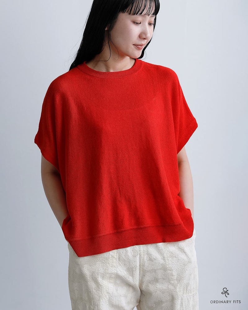 ordinaryfits(オーディナリーフィッツ)より、コットンリネン バーバーノースリーブ Tシャツ BARBER NOSLEEVEのご紹介です。清涼感のあるコットンリネンを使用したサマーニットの登場です。コットンのやわらかさとリネンのさらりとした風合いを掛け合わせることで、暑い季節でも快適に着用できる軽やかな素材感に仕上げています。シルエットは全体的にゆったりとした設計で、体のラインを拾いにくく、リラックス感のある雰囲気を演出。軽やかな着心地でストレスを感じにくく、デイリーウェアとして取り入れやすいのもポイント。シンプルながらも素材の表情が生きており、合わせるボトムを選ばず幅広いコーディネートに活躍します。夏のワードローブに一枚あると重宝するアイテムです。
