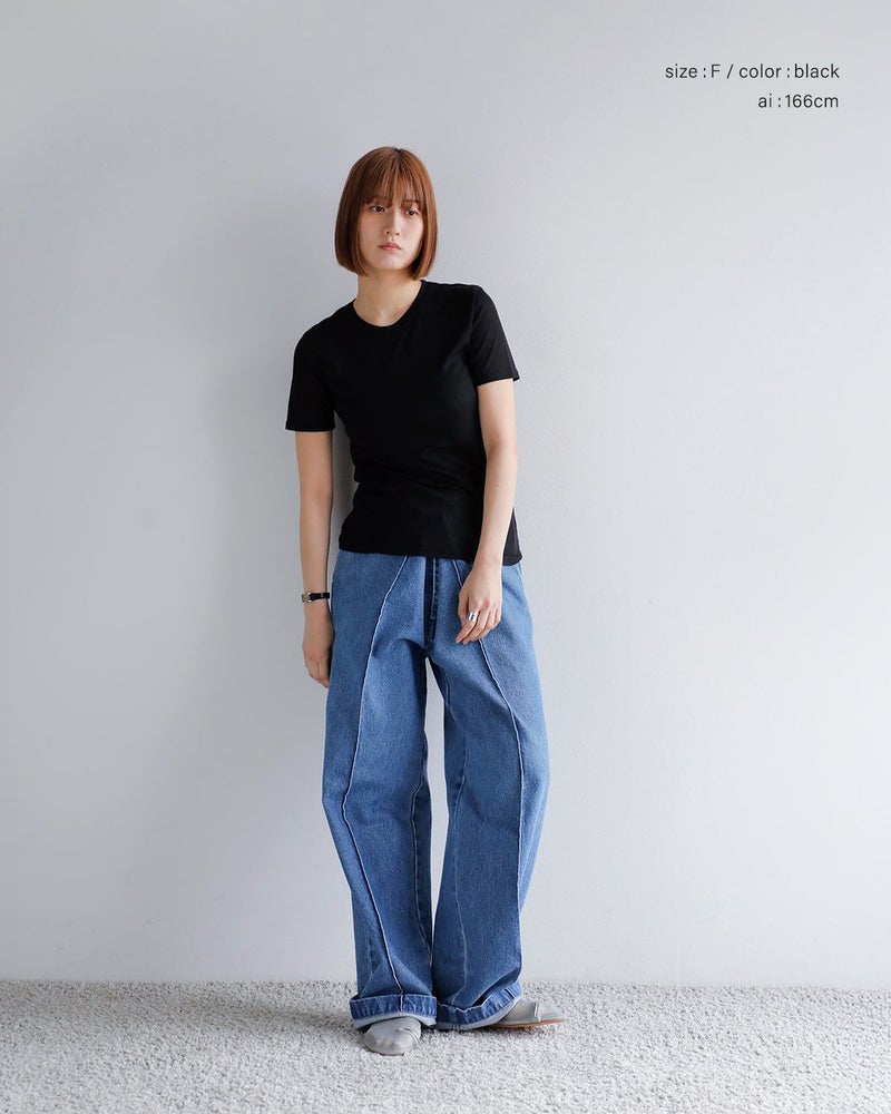 シンプルなデザインでどんなアイテムにも合わせやすい洗練された印象を与える半袖カットソー。