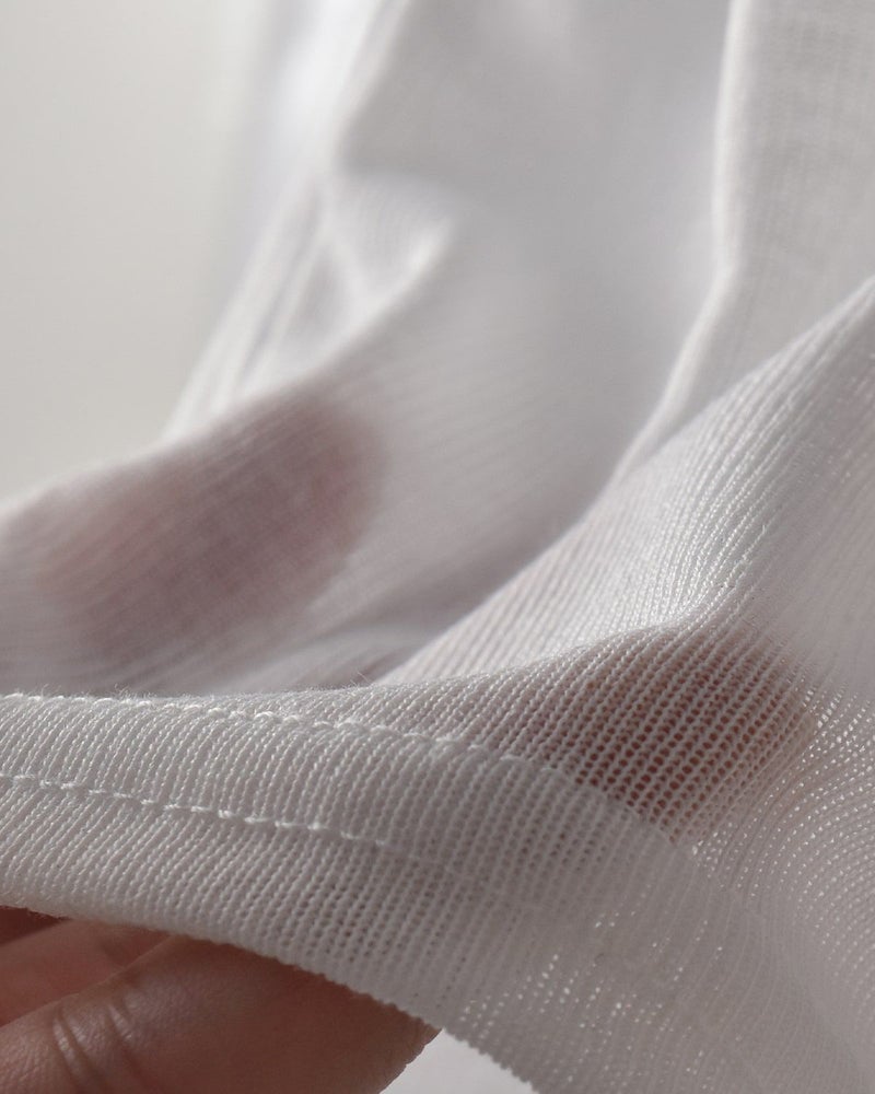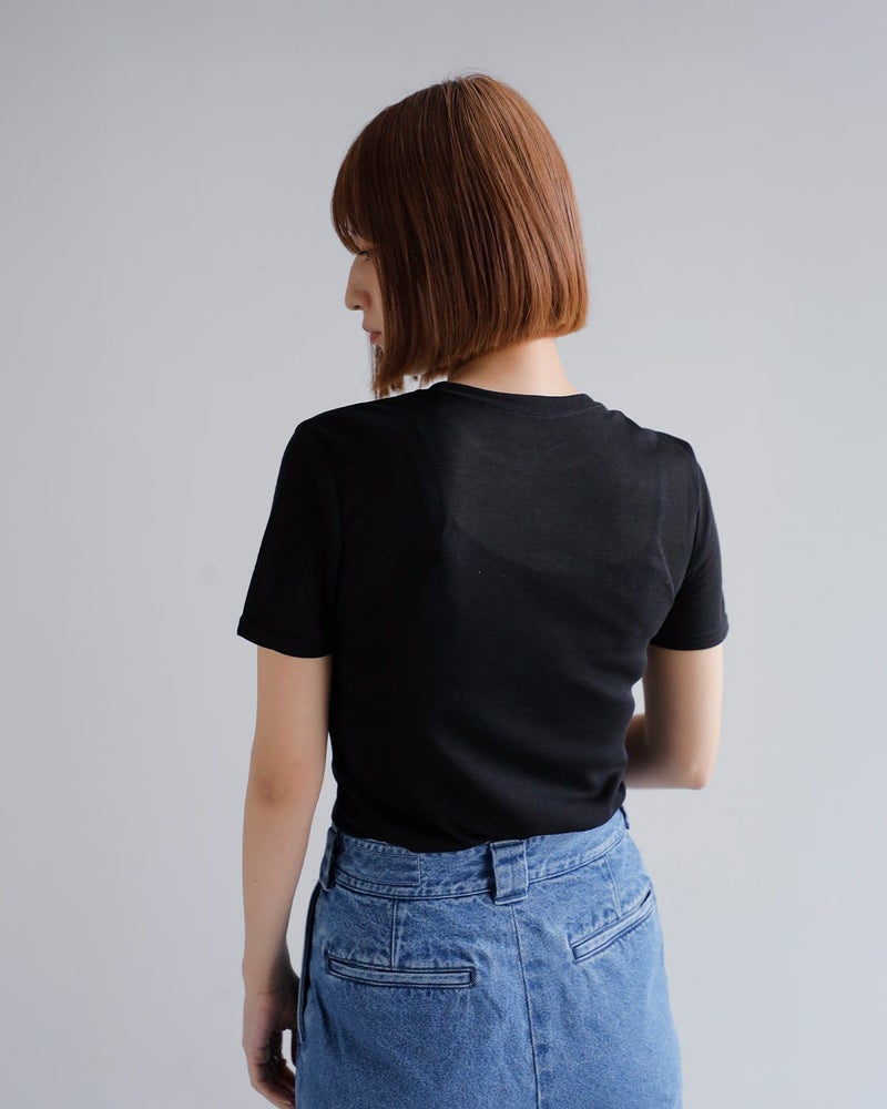 二の腕をカバーする絶妙な袖丈、どんなコーデにも合わせやすいシアーTシャツ