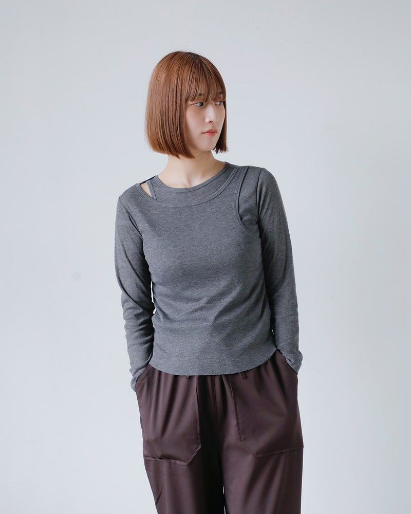 タンクトップをレイヤードしたような、ナチュラルに着られるカットソー。
