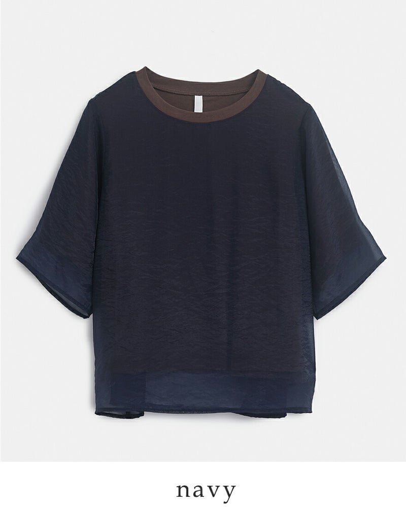 さらっとした肌あたりのカットソー素材と、程よい透け感のオーガンジー素材の組み合わせ。中のカットソー素材は柔らかな肌触りで、素肌に快適な着心地です。