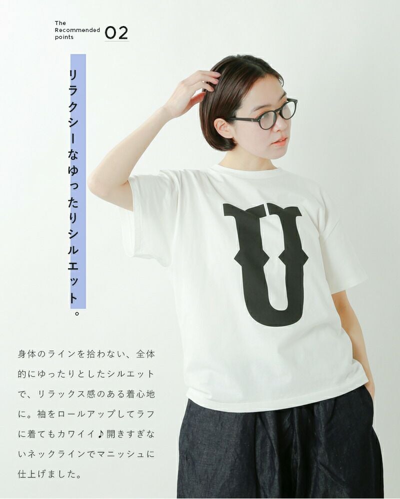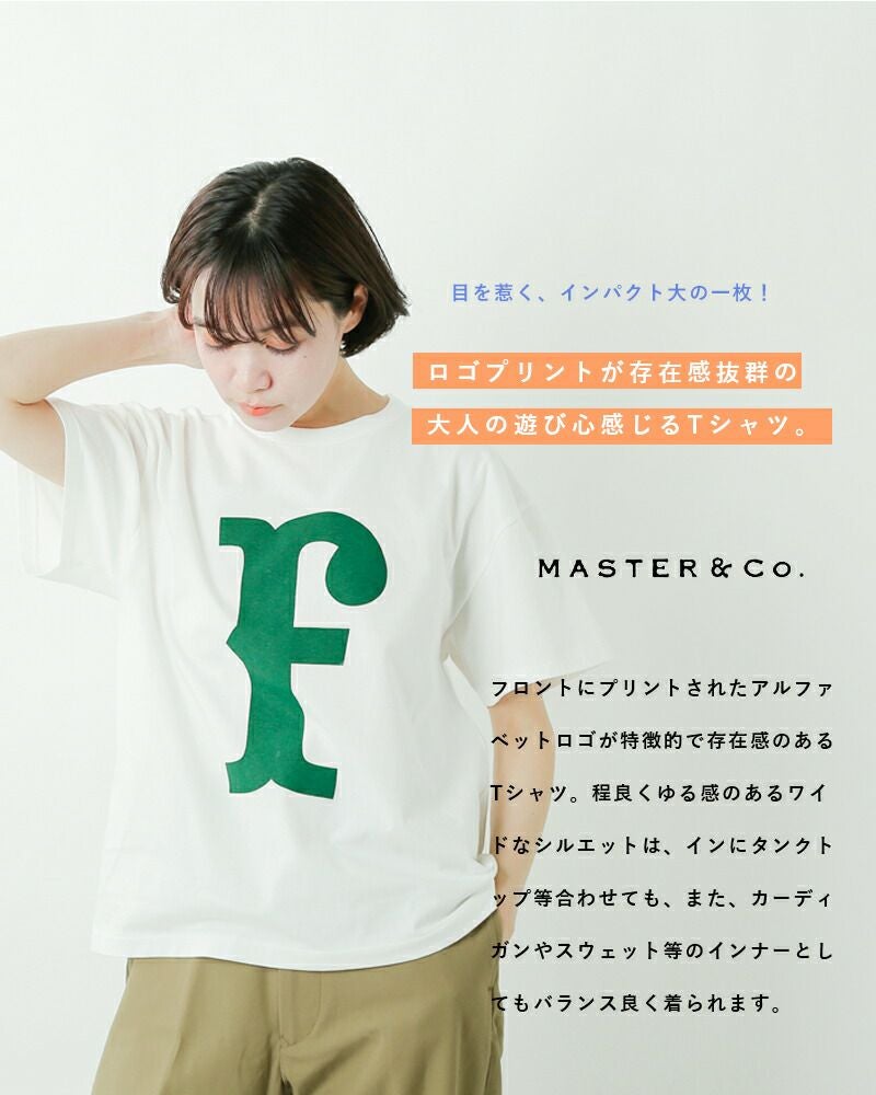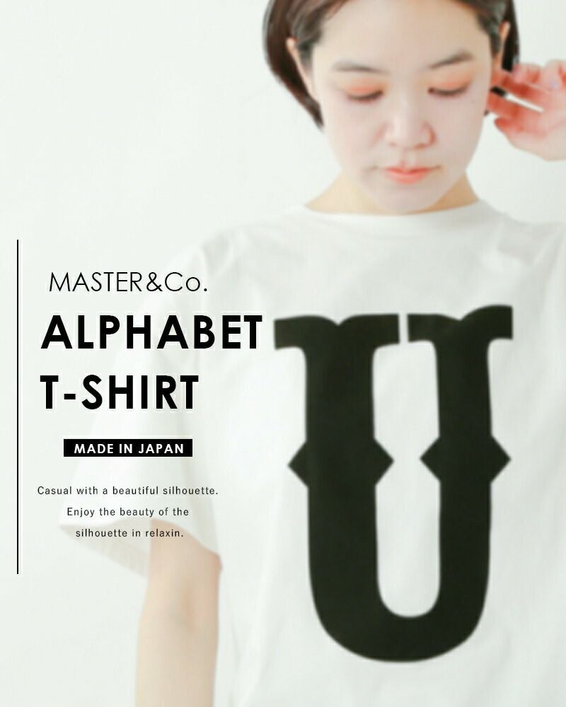 MASTER&Co.(マスターアンドコー)より、コットンアルファベットTシャツのご紹介です。フロントにプリントされたアルファベットロゴが特徴的で存在感のあるTシャツ。全体的に大きめのサイズ感で、程よく力が抜けたシルエットに仕上げられており、リラクシングな雰囲気でご着用いただけます。背面の襟元には縫い付けられたレザーと真鍮を使用したタグがあしらわれており、無駄を省いたミニマルデザインの中でワンポイントに。一枚でも様になりますが、カーディガンなどのインナーとしてもお使いいただけ、ロングシーズンで活躍してくれます。ご自身のイニシャルを選んだり、プレゼントにも喜ばれそうですね♪