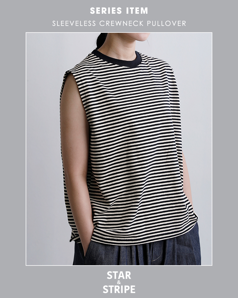 腕周りをスッキリと見せ、ヘルシーな肌見せを演出するノースリーブプルオーバーもご用意しております。