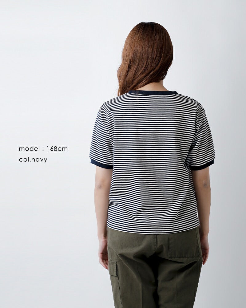 STAR&STRIPE(スターアンドストライプ)より、ボーダーリンガーTシャツのご紹介です。細身のボーダーが女性らしい雰囲気のリンガーTシャツ。柔らかく伸縮性のあるコットン生地でストレスフリーな着心地。ベーシックなデザインで様々なアイテムに合わせられるボーダートップスは一枚は持っておきたい定番アイテムです。