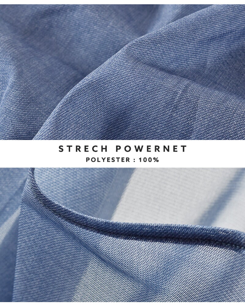 ポリエステル 100% しなやかな伸縮性と軽やかな透け感を併せ持つ、ポリエステルのストレッチパワーネット素材を使用。身体の動きにやさしくフィットし、締めつけ感のない快適な着心地を叶えます。薄手で通気性が良く、レイヤードしても重たくならないのが魅力。