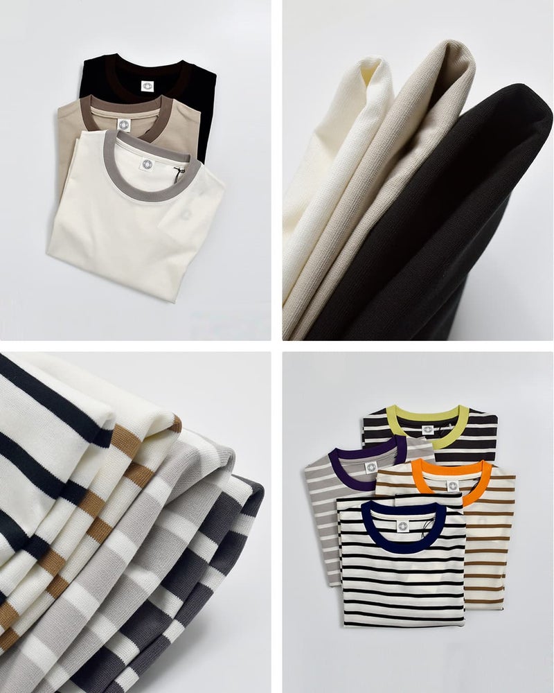 無地はミニマルで洗練された印象、ボーダーはネックの配色がアクセントとなり、着こなしにさりげない遊び心をプラス。シンプルながらも、どこか印象に残る一枚です。