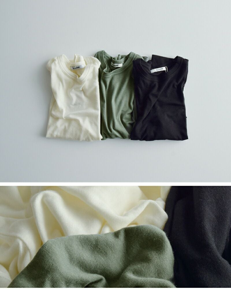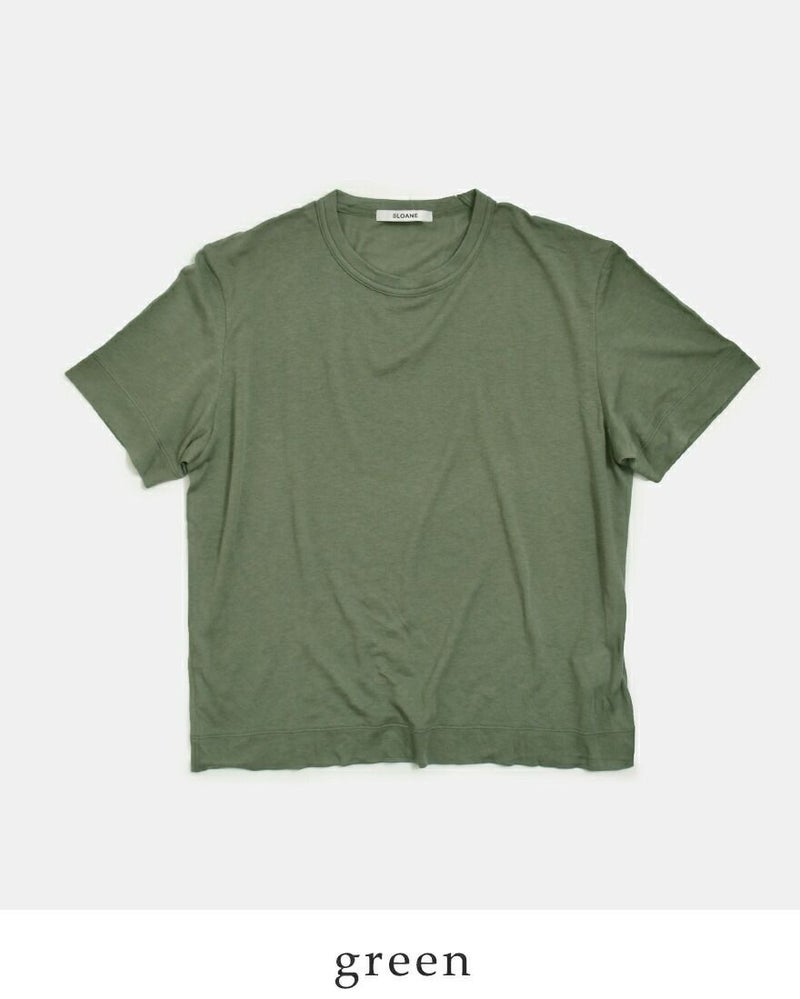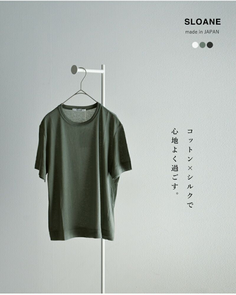 SLOANE(スローン)より、コットンシルク半袖Tシャツのご紹介です。コットンとシルクのブレンド糸を用いたTシャツで、ソフトで優しい肌触りはインナーとしても◎。カジュアルなTシャツでありながら、上品で大人らしい表情に仕上がっています。