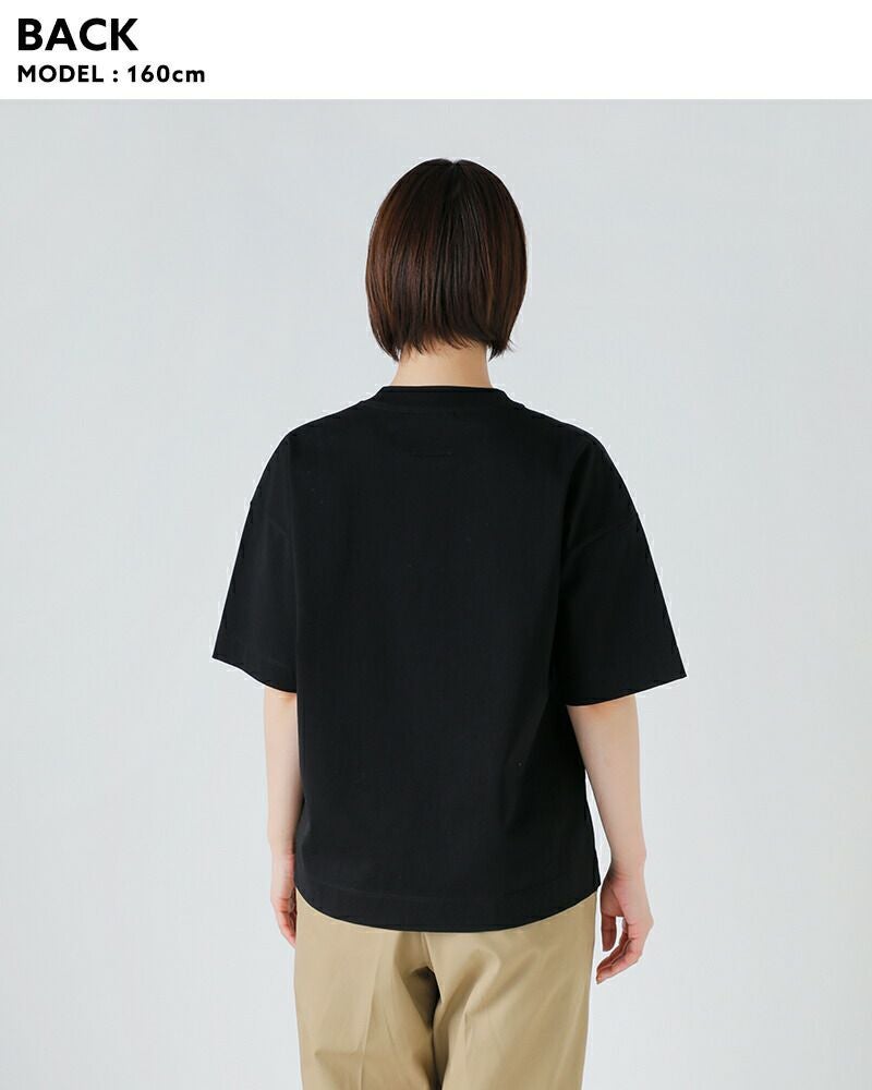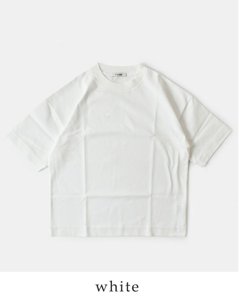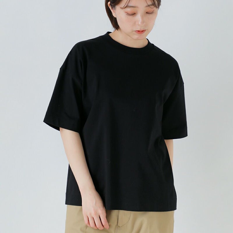 肩のラインを緩やかに落としたドロップショルダーが、こなれたヌケ感を演出。>五分袖に近い長めの半袖丈なので、二の腕周りも自然にカバーしてくれます。