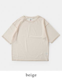 全体は、オーバーサイズで抜け感のあるシルエット。ゆったりとしたシルエットと5分袖デザインが特徴で、適度なリラックス感を演出。