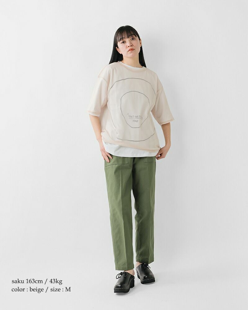 Tシャツ1枚ではシンプルになりすぎるコーデも、シアーTを重ねるだけでグッと洗練された印象に。デイリーに取り入れやすく、着こなしのバリエーションを増やしてくれる便利な一着です。