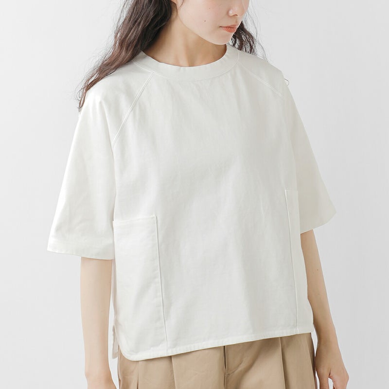 tissu(ティシュ)よりヘビープレーティング 天竺 ラグラン Tシャツのご紹介です。昨年も大人気だったラグランTシャツのリバイバルアイテム。両脇パッチポケットがポイントの一枚で可愛いシンプルなTシャツ。製品洗いを施し、肌当たりもよい天竺コットン生地で着心地も抜群。ボリュームはありながら、柔らかな風合いです。バランスよくすっきりと着られるサイズ1と、ゆったりとこなれ感を出して着られるサイズ3の2サイズからお選びいただけます。コットン素材でお洗濯もしやすく、これからの季節に活躍間違いなしの一枚です。