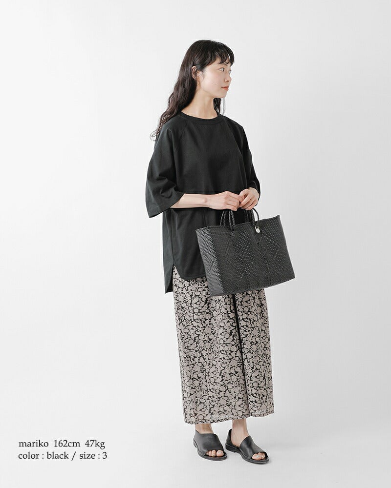 二の腕をすっぽりとカバーするラグランスリーブでノンストレスな着心地。一枚でさらりと着られてこなれ感を演出できます。