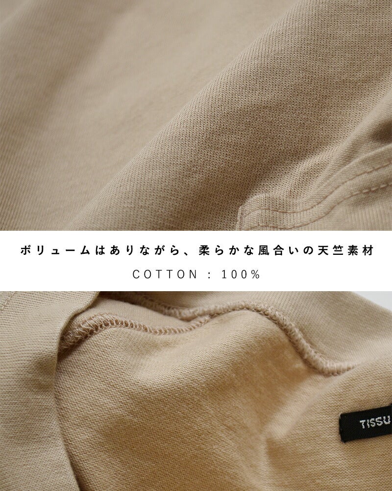 ボリュームはありながら、柔らかな風合いの天竺素材を使用。内側も滑らかな肌触りで、抜群の着心地です。
