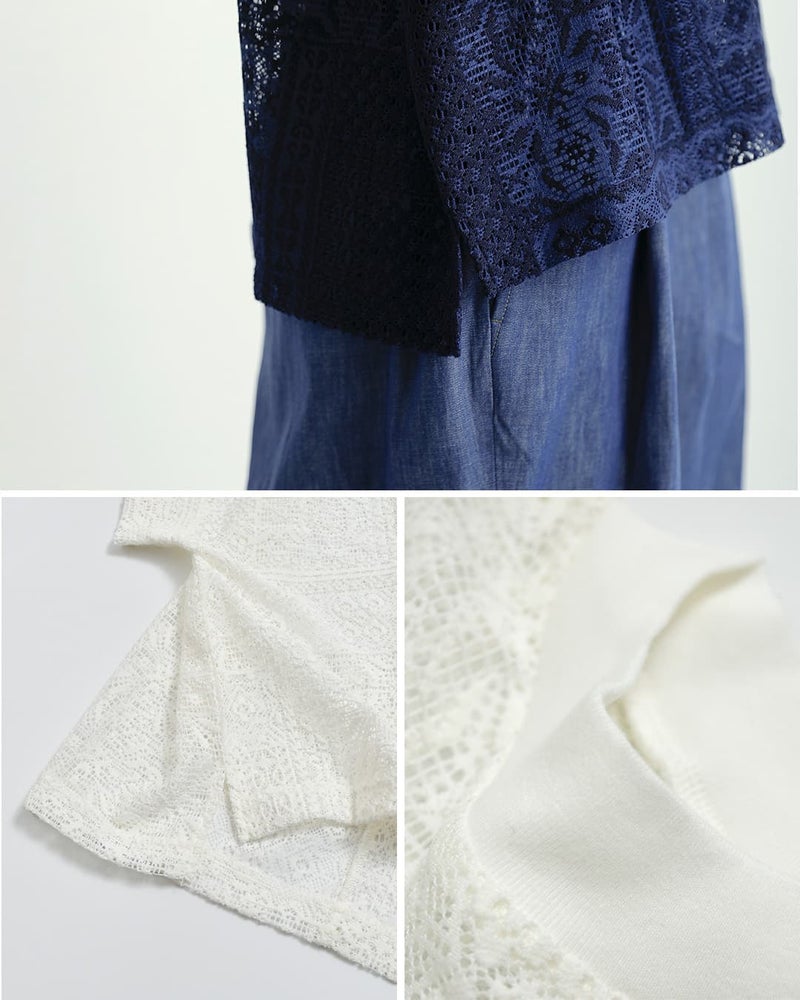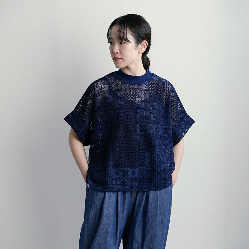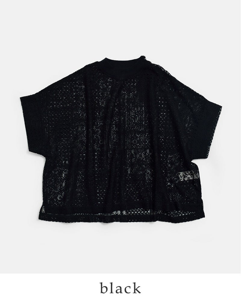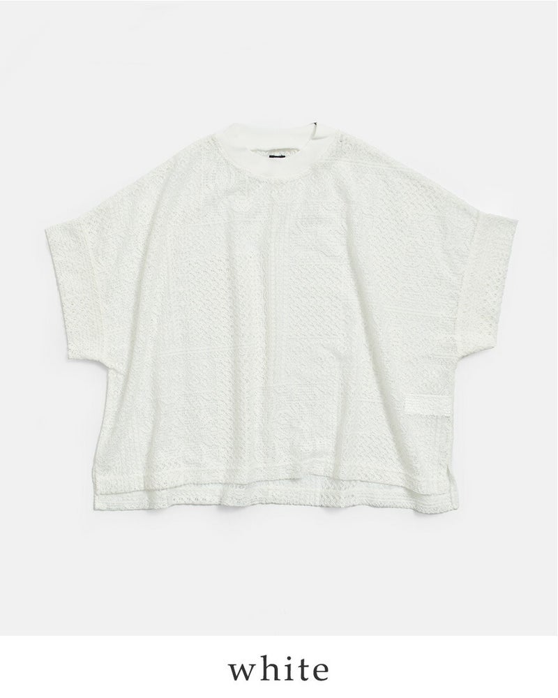 tissuの人気定番アイテムのモックネックドルマンTシャツを、形はそのままにレース生地で仕立てました。ストンと落ちるシンプルなシルエット。レース素材を使用しながらも、甘くなりすぎず、上品に仕上がっています。