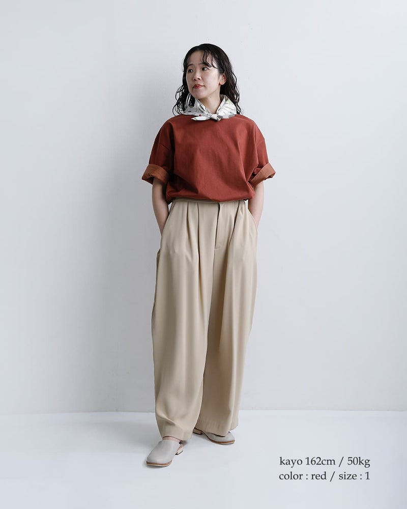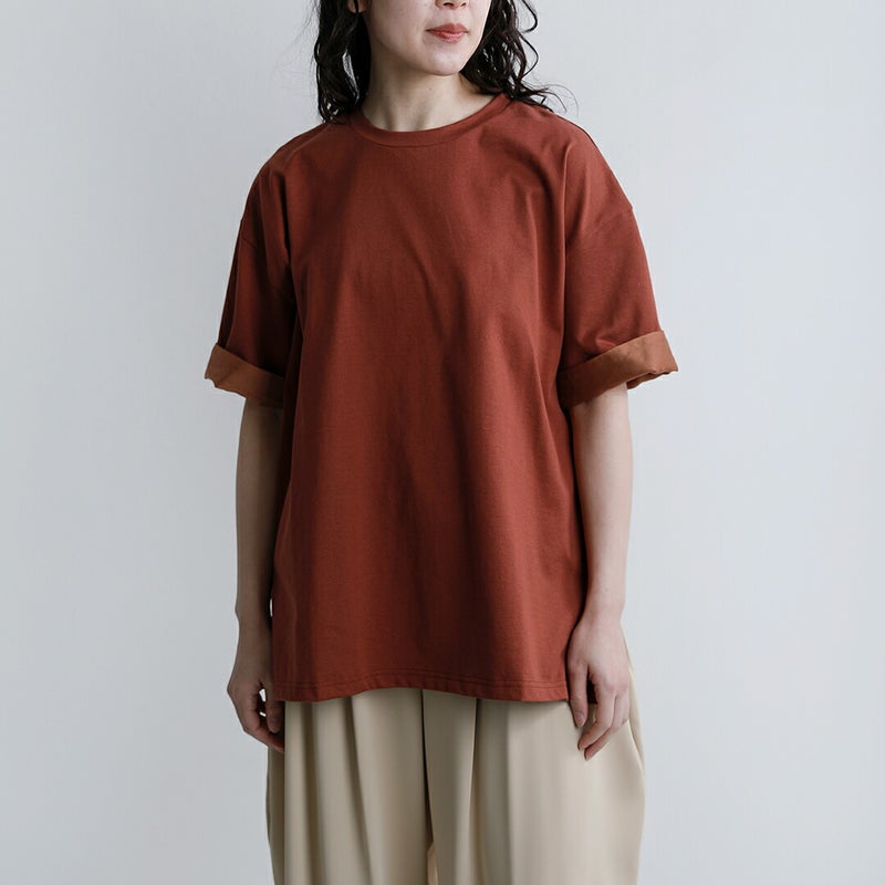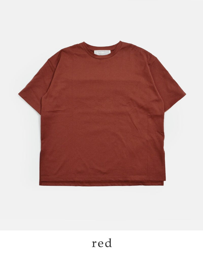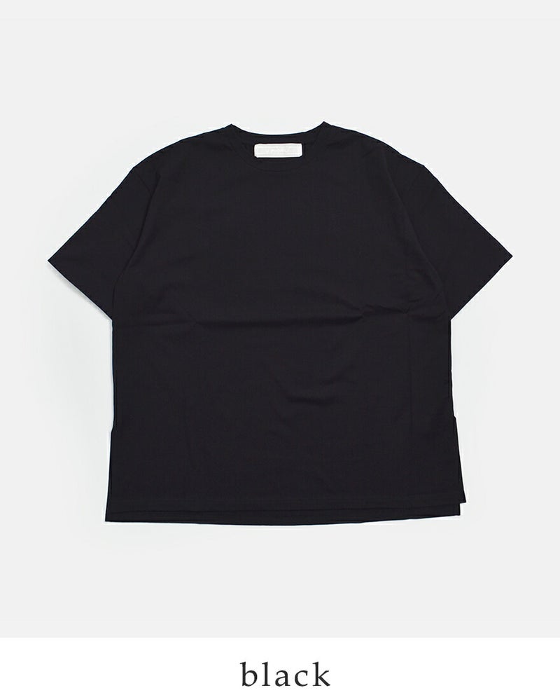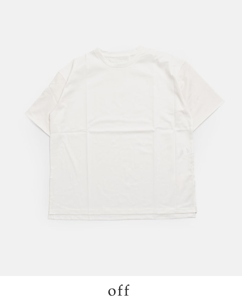 上質なコットン原料を使用した綿100%のシルケット天竺素材を採用。シルケット加工とバイオ加工を施すことで、しっとりと滑らかな肌あたりと上品な光沢感を引き出しました。程よい肉感のハイゲージ生地で透けにくく、デイリーに取り入れやすい快適な着心地も魅力です。