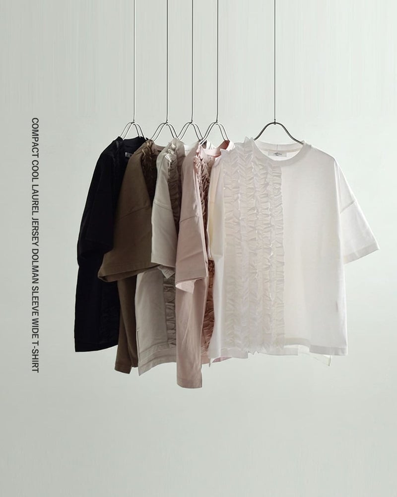 ベーシックな中肉カットソーナチュラルタイプライターフリルTシャツシンプル甘さ体型カバードロップショルダー universal seven ユニヴァーサルセブン コットン クラシック天竺 フリル Tシャツ us251ct023 2026ss新作 春夏 レディース