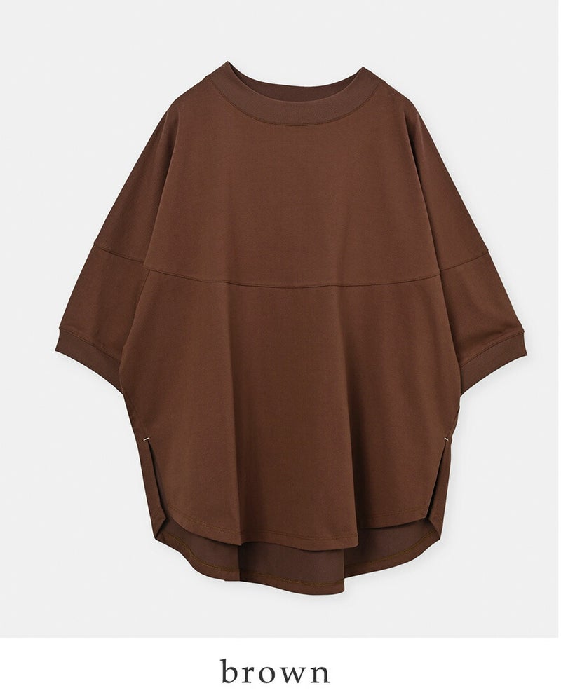 肩から円形に切り替えられたディテールが、丸みのある優しいシルエットを形成。肩周りに程よいゆとりを持たせ、袖の膨らみが全体のバランスを整えます。体のラインを拾いにくい構造で、動きやすさと美しさを両立したデザインです。