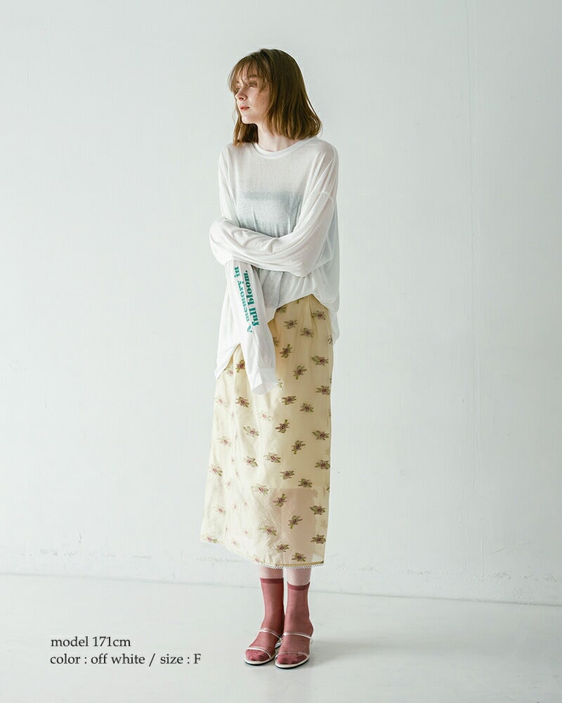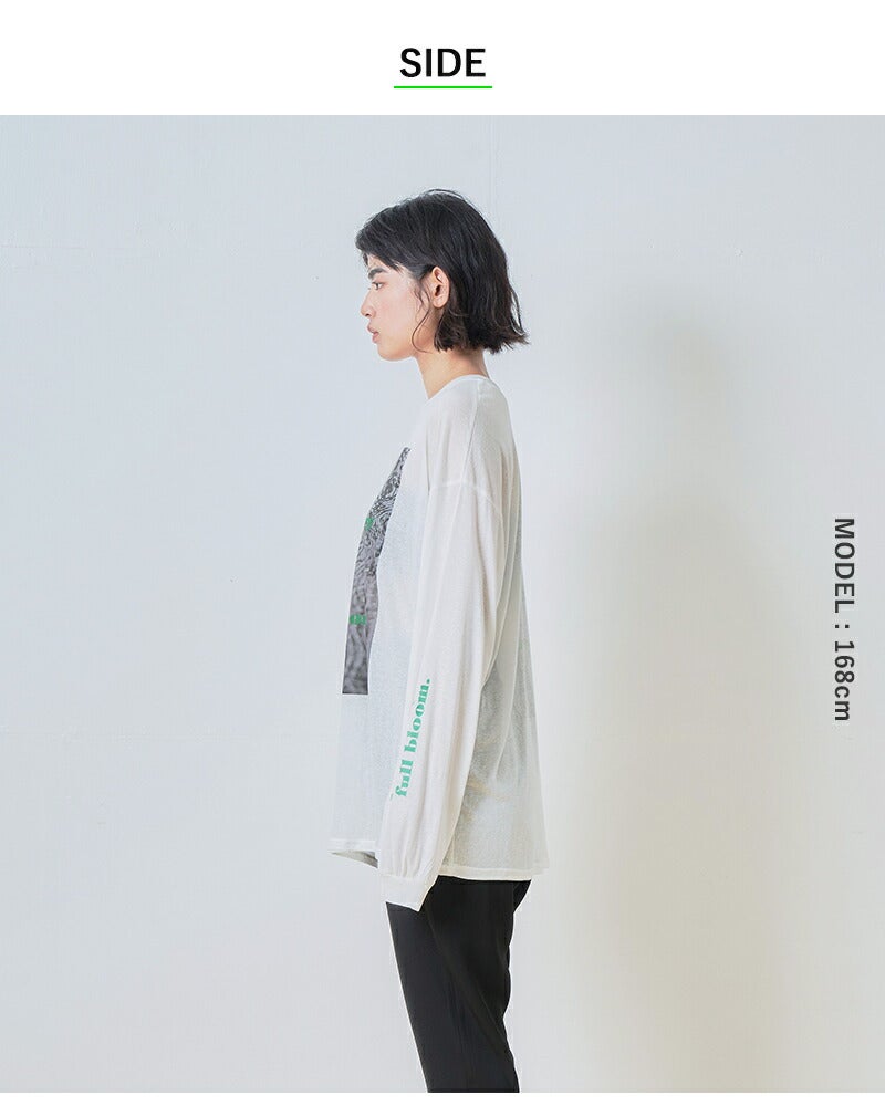 シアー素材にプリントを施した、軽やかで洗練された印象のロングスリーブTシャツ。
