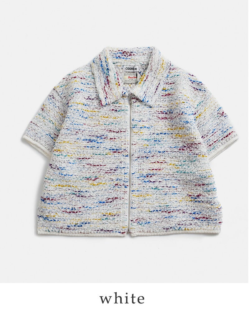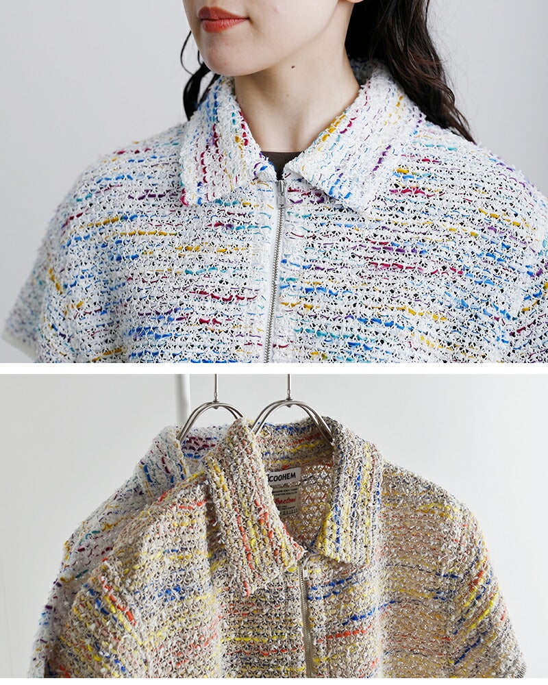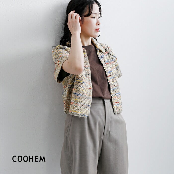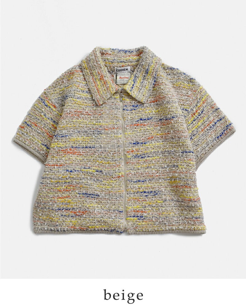 COOHEM(コーへン)より、KOUHENサマーツイードニットシャツをご紹介します。透け感のある軽やかなニットツイードを使用したニットシャツ。清涼感があり、涼しく着られるニットで、夏の羽織りとして、シャツやジャケット代わりに活躍するアイテムです。マルチカラーのファンシーヤーン(意匠糸)が華やかで、着こなしのポイントになる主役級アイテムです。