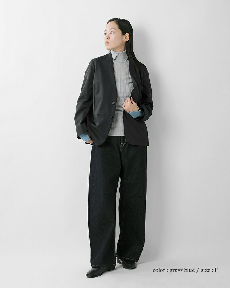 襟のようなディテールのタートルネックがお顔周りをエレガントな印象に。