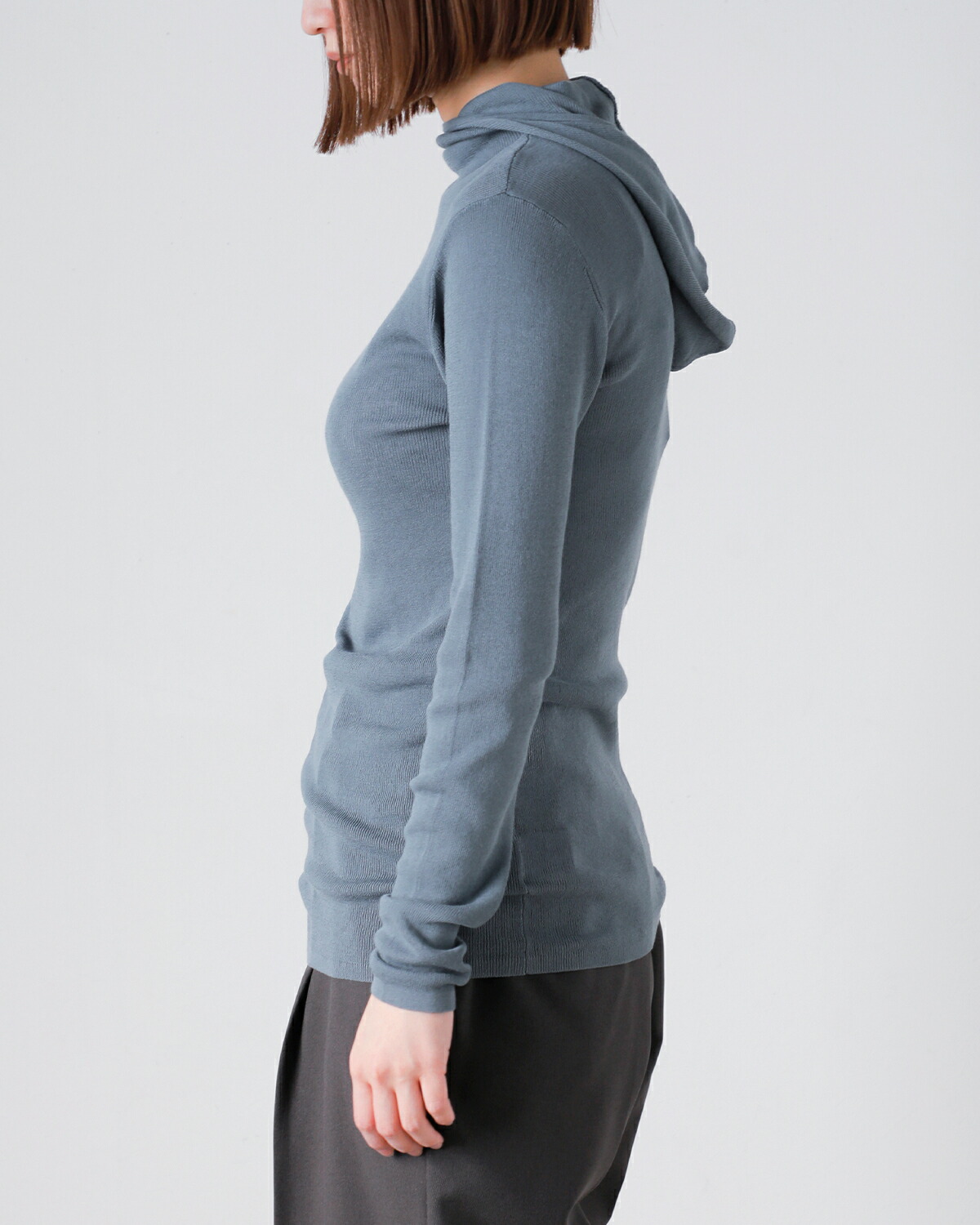 レーヨン素材の中でも特に柔らかく、滑らかな肌触りが魅力のモダール混を使用したフーディーニットプルオーバー。一枚でさらりと着るのはもちろん、ジャケットやニットのインナーとしても万能なアイテムです。