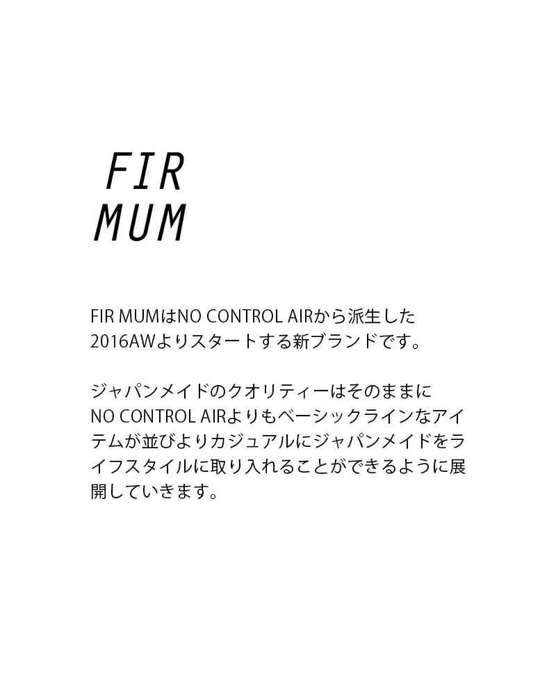 FIR MUMはNO CONTROL AIRから派生した 2016AWよりスタートする新ブランドです。 ジャパンメイドのクオリティーはそのままに NO CONTROL AIRよりもベーシックラインなアイテムが並び よりカジュアルにジャパンメイドをライフスタイルに 取り入れることができるように展開していきます。
