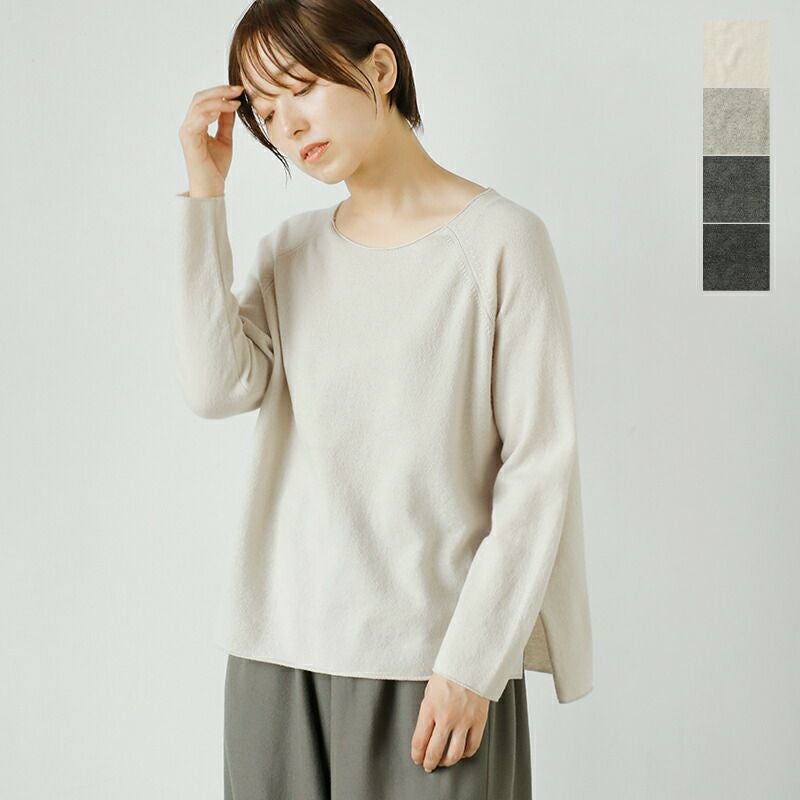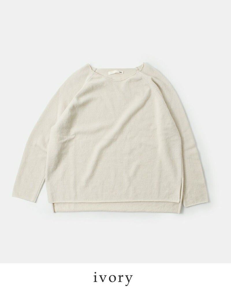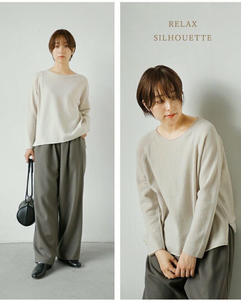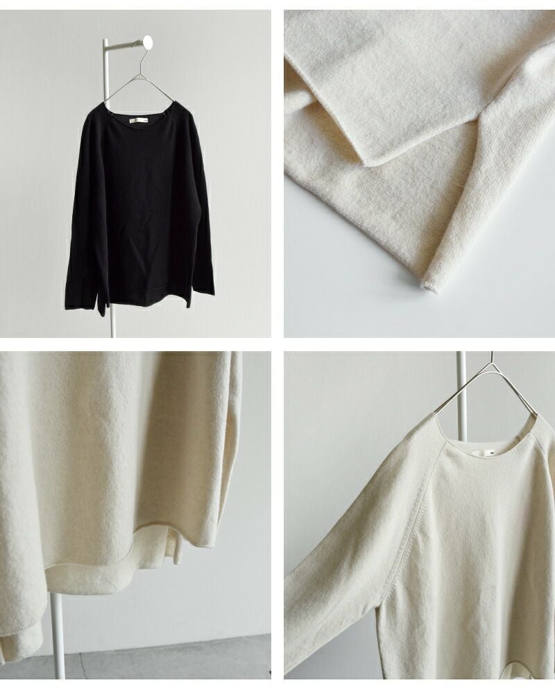 程よくゆとりのあるシルエット。 サイドスリットが抜け感をプラス。 くるんと丸まった切りっぱなしのような裾デザインが可愛い。 ラグランのお袖は動きやすさ◎。
