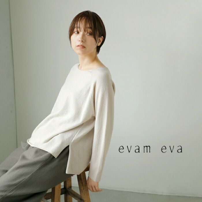 evam eva(エヴァムエヴァ)より、ファインメリノ ウール ニット プルオーバーのご紹介です。上質なファインメリノウールを使用したニットプルオーバー。品のあるデザインながら、ゆとりのあるシルエットで現代的なリラックス感を演出。ベーシックなカラー展開により、どんなワードローブにも簡単に合わせることができます。同素材を使用したローブベストもおすすめ◎。