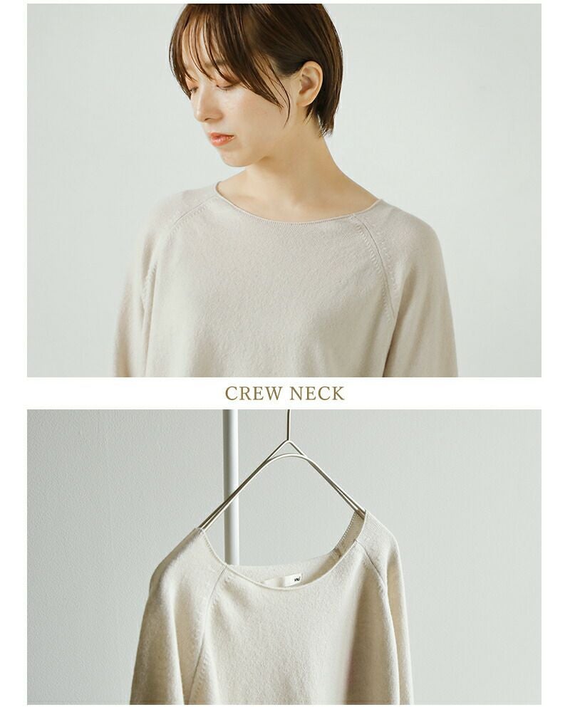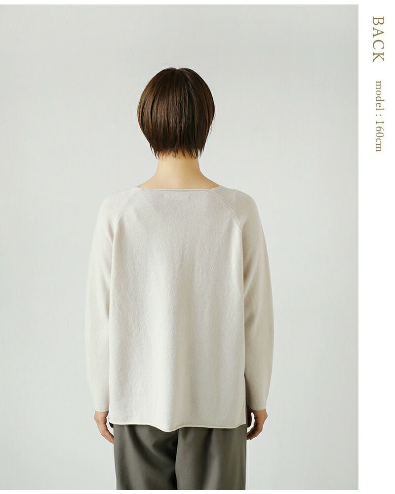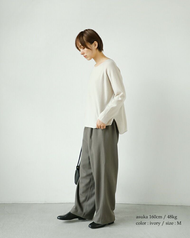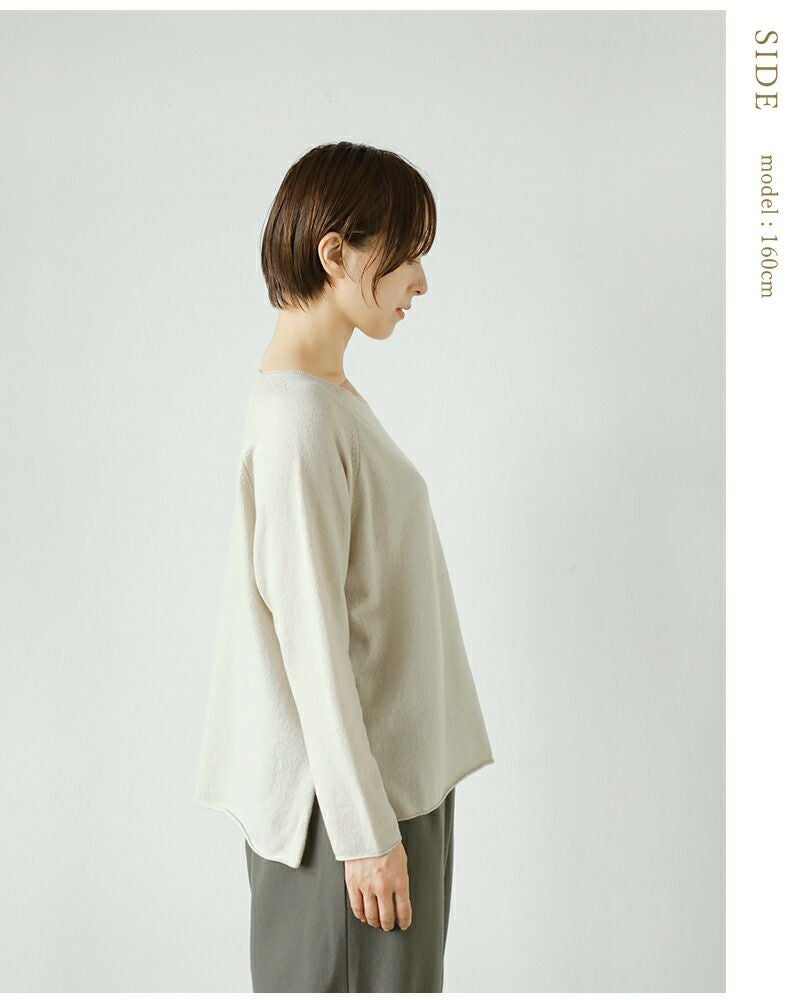 少し横に開いたシンプルなクルーネック。デコルテラインが綺麗に見え、お顔周りがすっきりします。