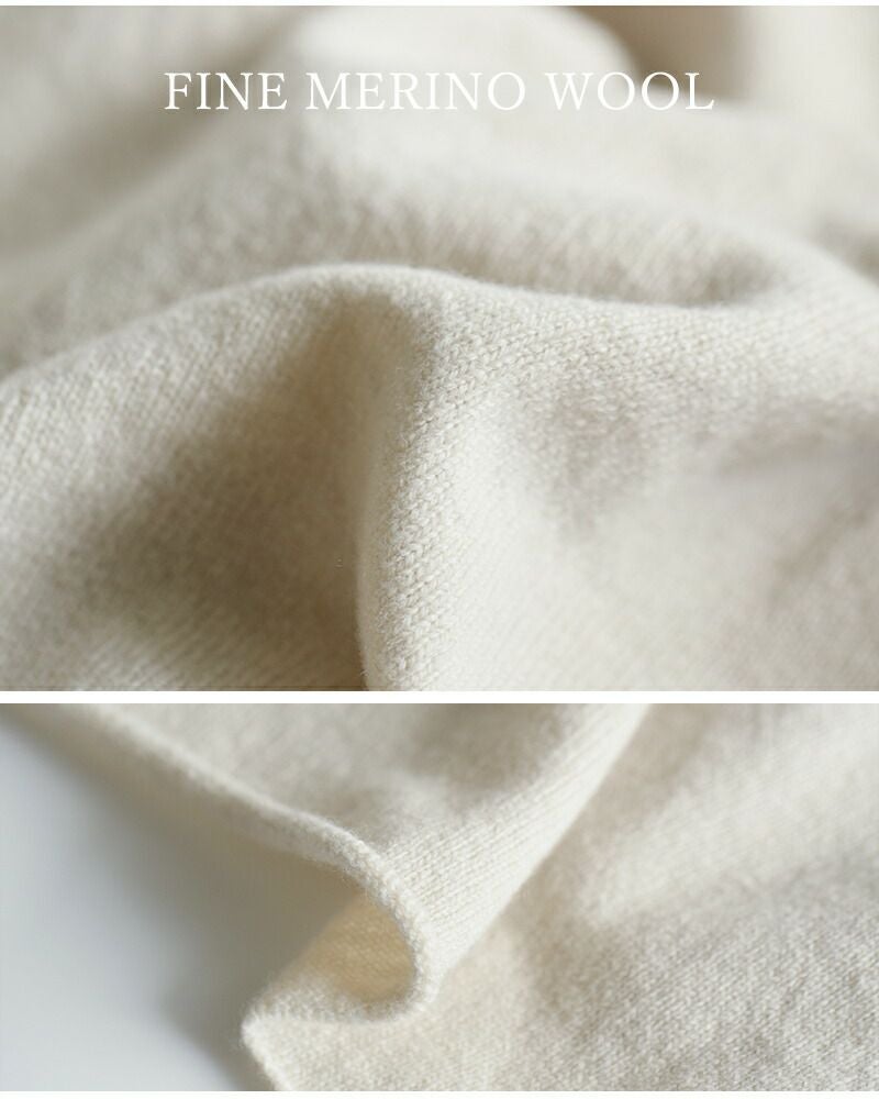 ◆ウール 100% ニュージーランド最高峰の山岳地帯で飼育されているファインメリノウール。寒い地域で育ったウールの毛は、カシミヤと並ぶほどの細くなめらかな繊維です。柔らかく、ふくらみのある風合いと軽い着心地で、初秋から取り入れやすいです。