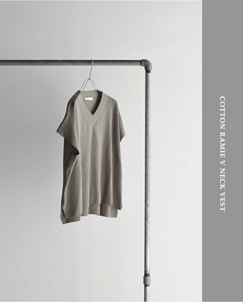 evam eva(エヴァムエヴァ)より、コットン ラミー Vネック ベストのご紹介です。コットンラミー素材の畦編み仕立てVネックベスト。太めのリブですっきりなネックライン。着回しも効き、気温が変動する時期も活躍し、ロングシーズン重宝します。細やかな畦編みで伸縮性があり、ほどよくドライタッチな質感と、柔らかな色合いが身体にやさしく馴染んでくれます。