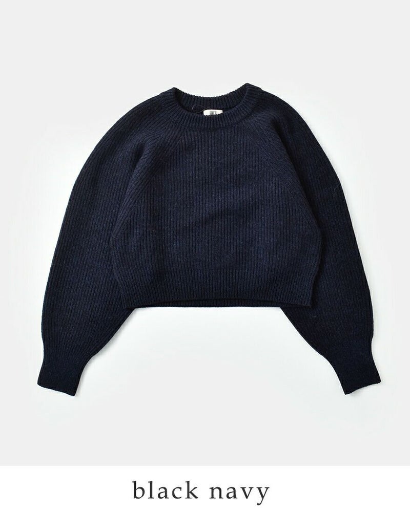 アームホールは動きやすいラグランスリーブデザイン。袖口と裾には編地の切り替えを施したリブ仕立てを採用し、ゆとりのあるシルエットを引き締めることで、メリハリのある美しいフォルムに仕上げています。