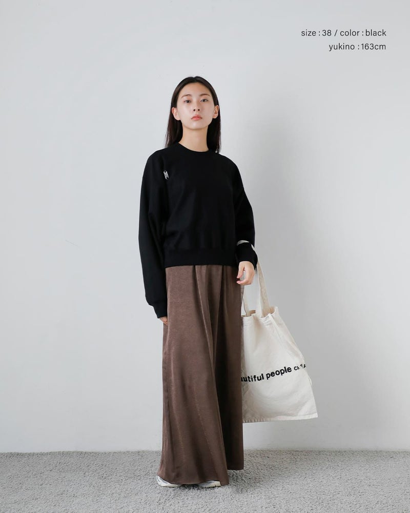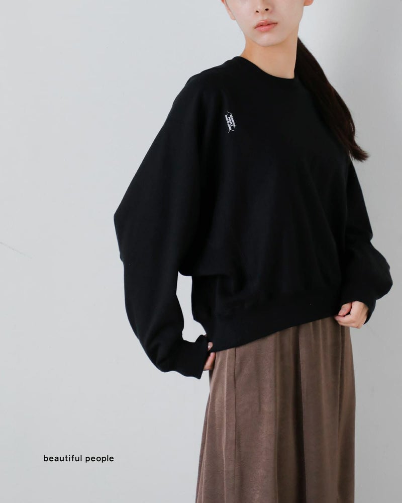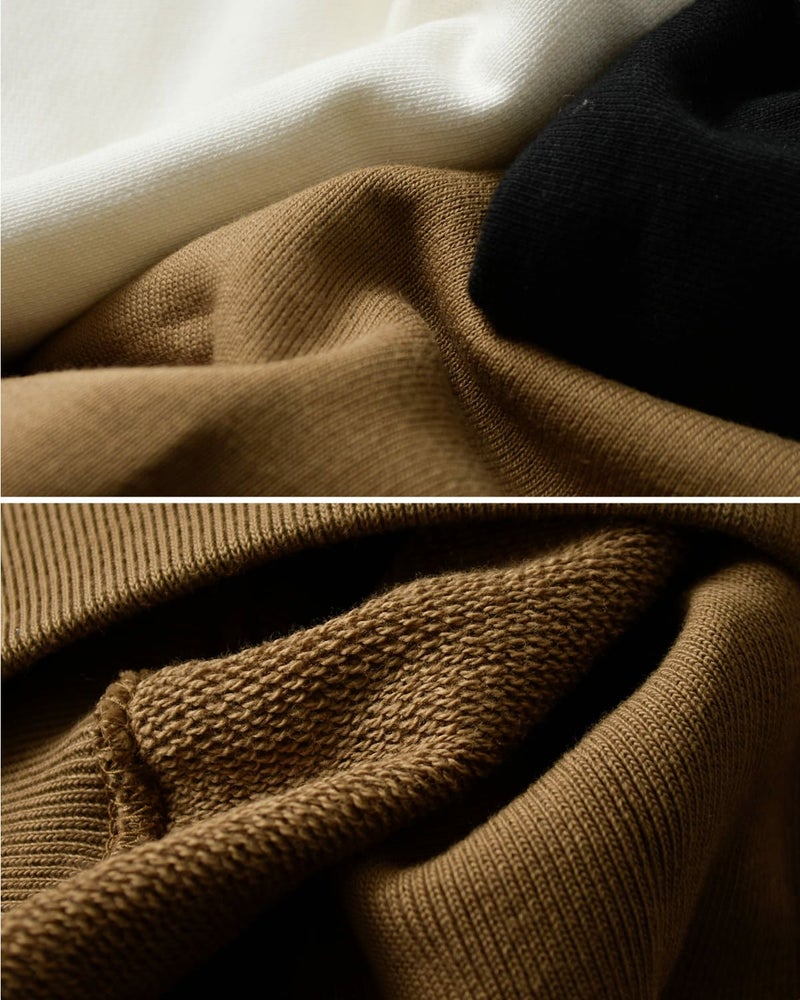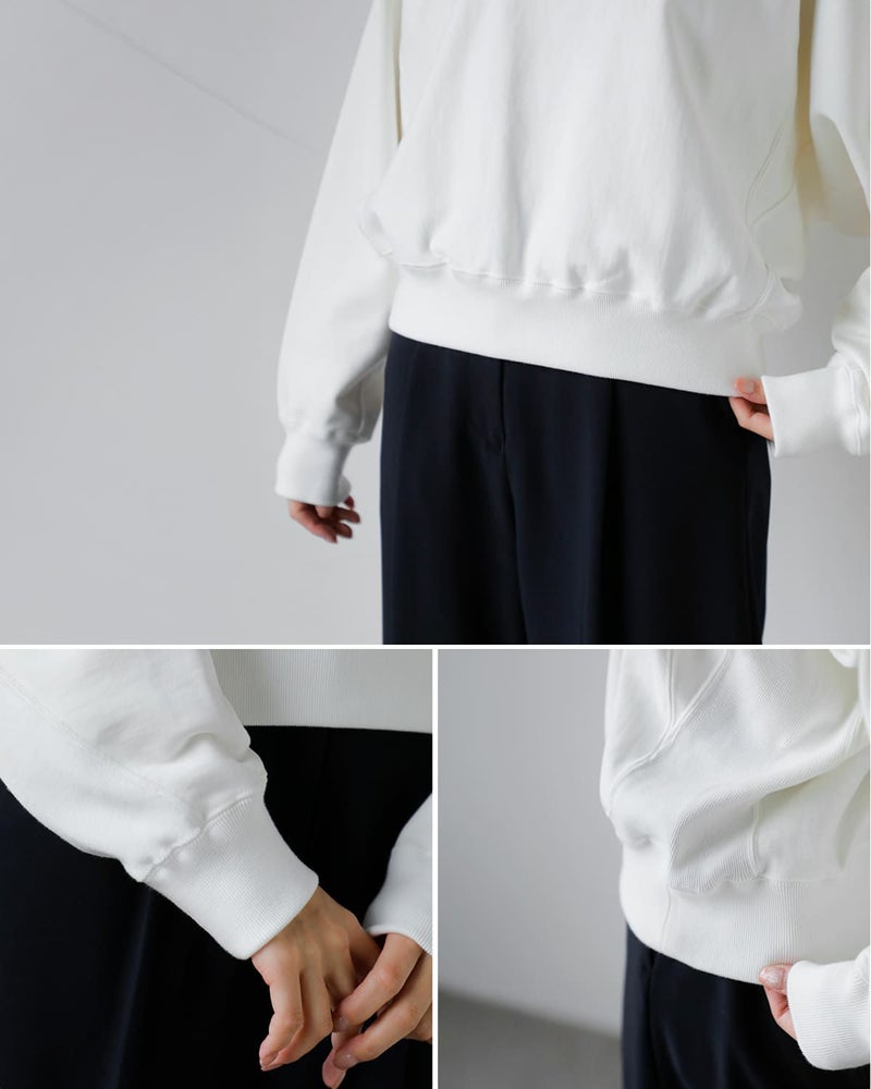 素材には、しっとりとしたスビンとハリのあるコットンをブレンドした光沢感のある裏毛を使用。超長綿の太番手糸を贅沢に使い、最大限に度目を詰めることでハリコシを出しながら、厚手でありつつ適度な柔らかさとソフトなタッチを実現。エクストラヘビーウエイトの存在感と、上質な風合いを兼ね備えたスウェットです。