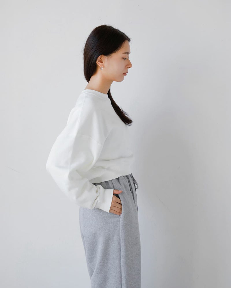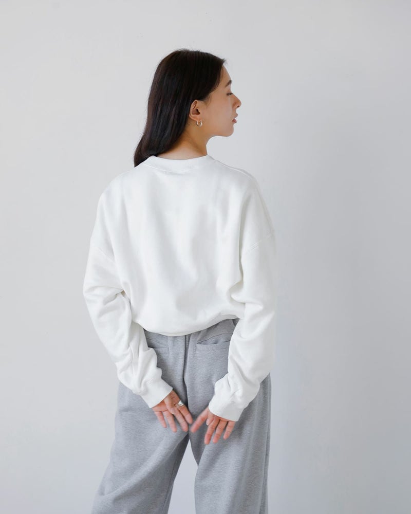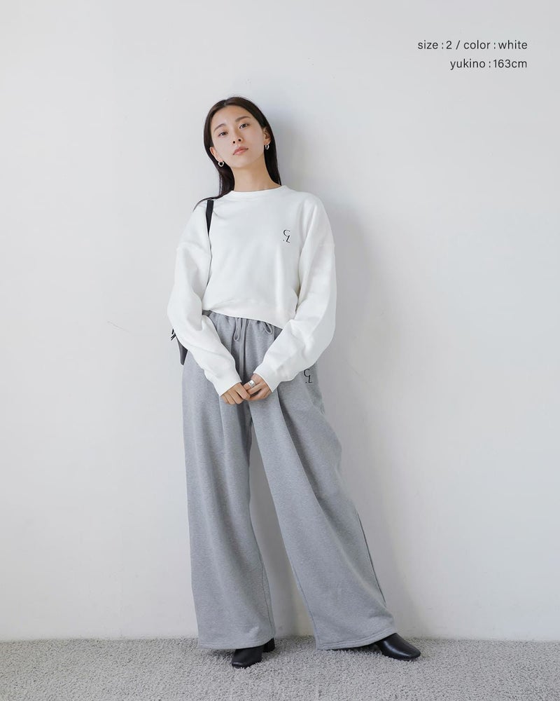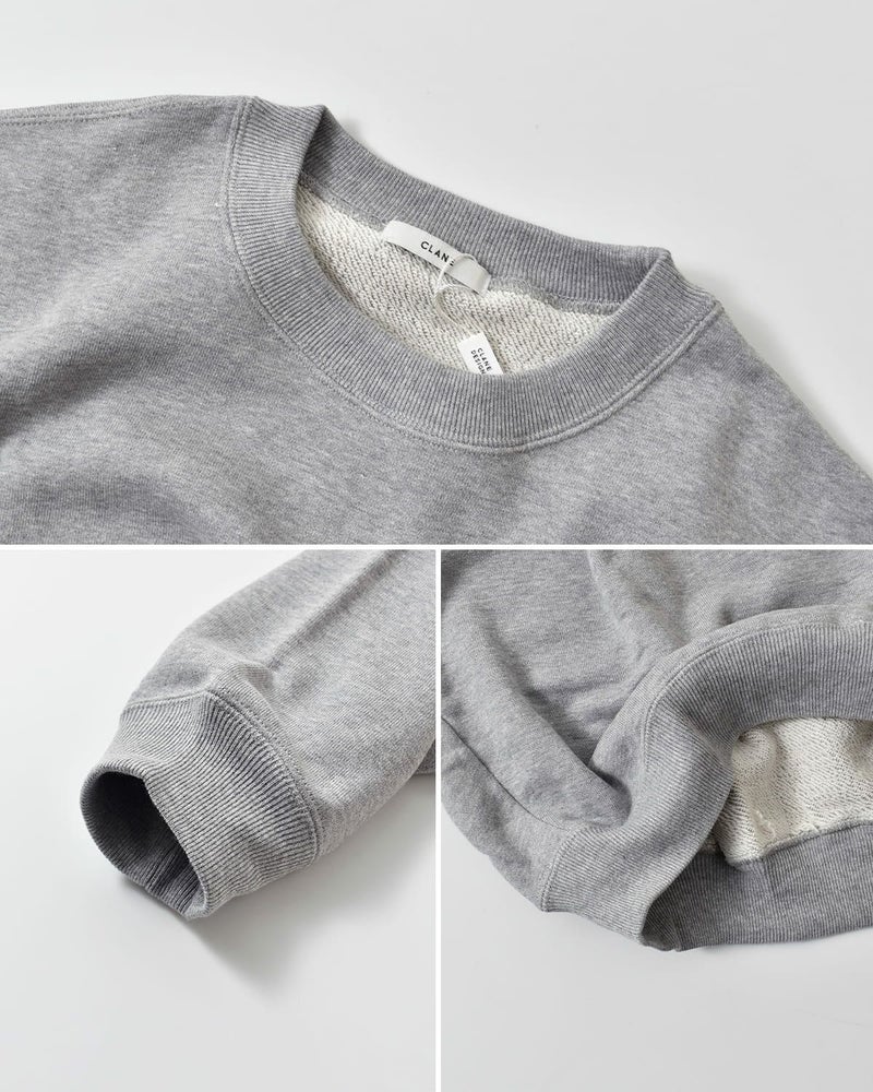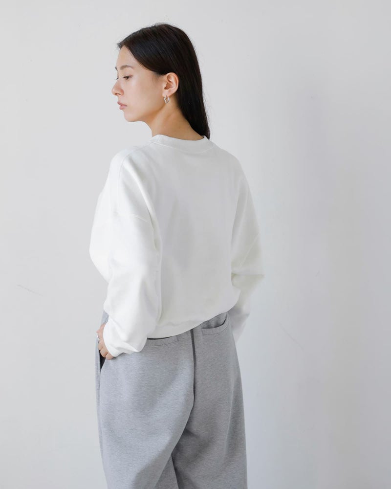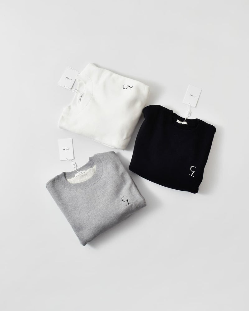 CLANEのCL LOGOシリーズから登場したスウェットトップス。肩線を大きくドロップさせ、袖幅と身幅にゆとりをもたせたリラックス感のあるデザインが特徴です。同素材の「LOGO SWEAT TUCK WIDE PANTS」とセットアップで着用した際には、程よく肌見せができる着丈に設定されており、スタイリングに抜け感をプラス。左胸のロゴ刺繍がシンプルな中に存在感を与えています。首元はベーシックなリブクルーネック、袖口と裾にはリブを施し、全体のシルエットにメリハリを加えました。落ち感のある柔らかな裏毛素材を使用し、デイリーに取り入れやすい一枚です。