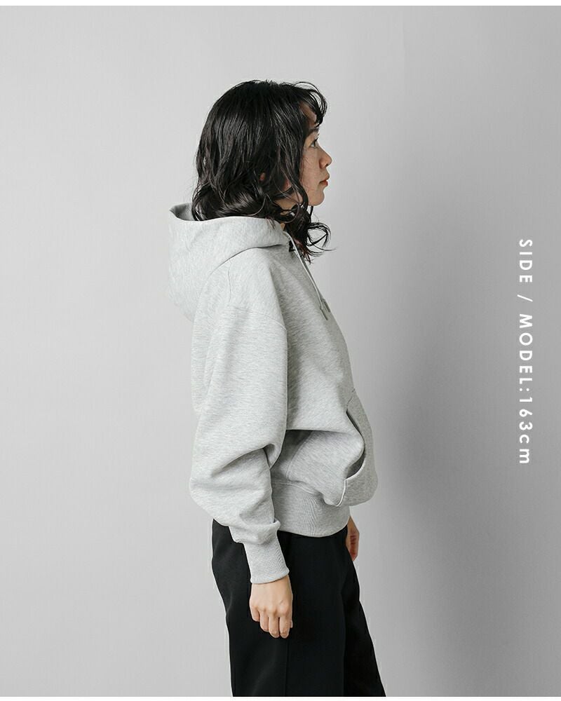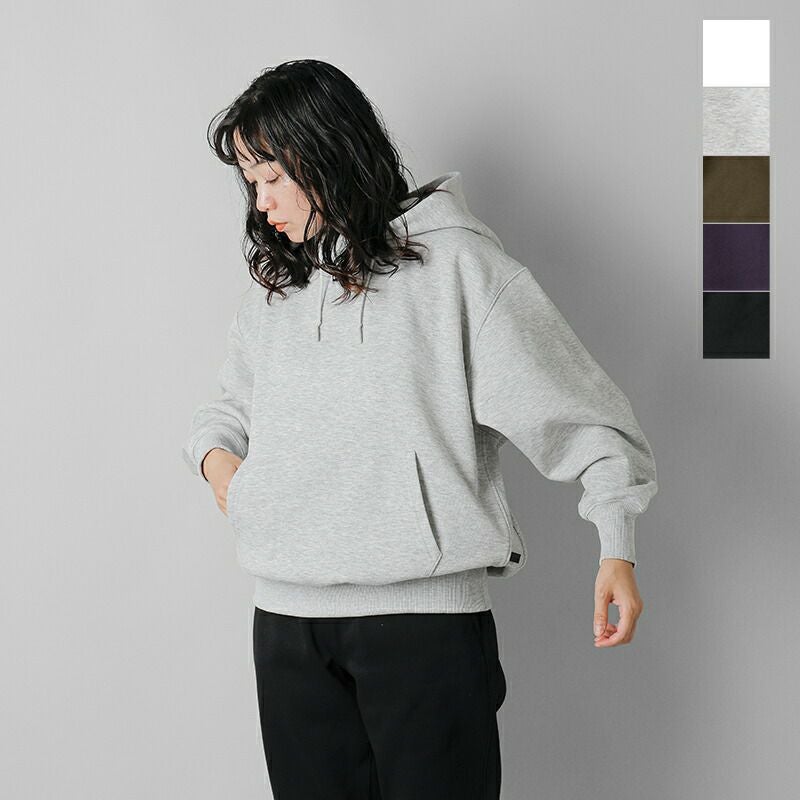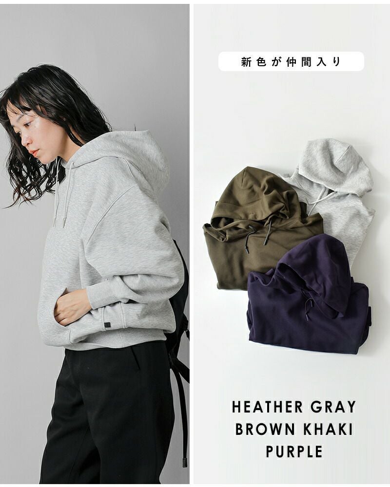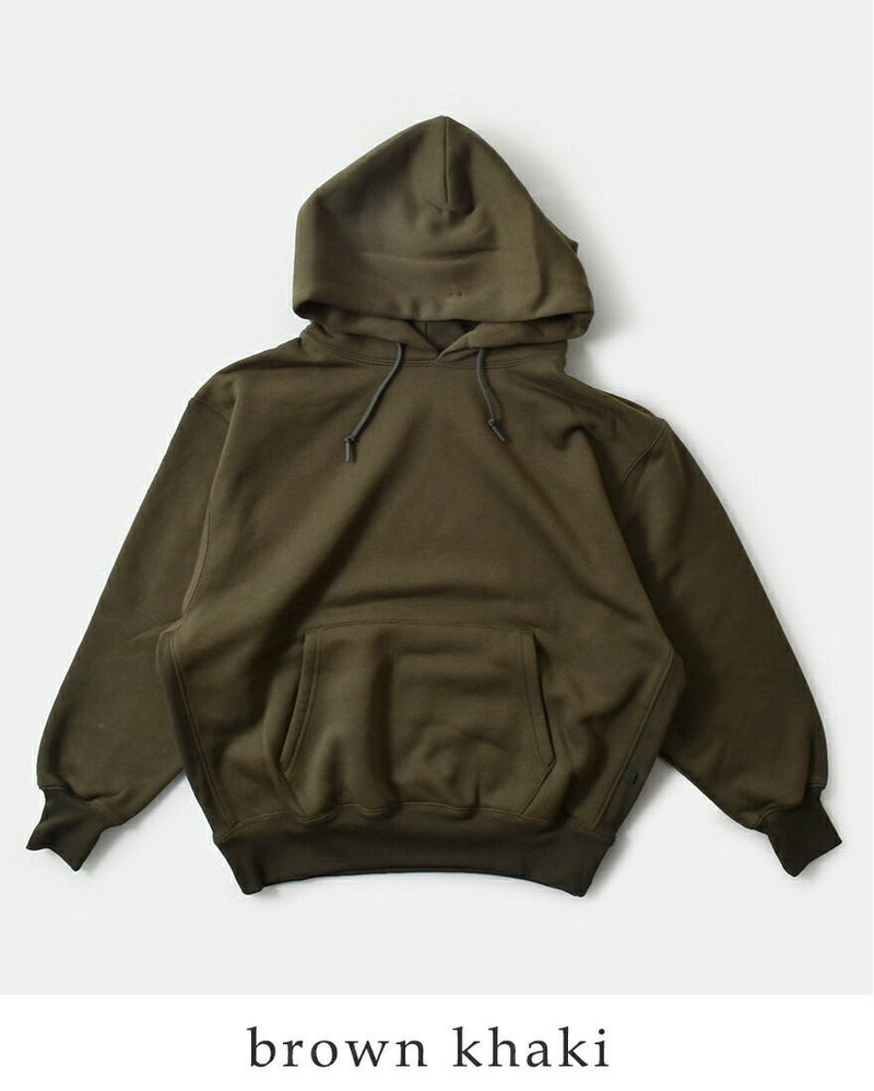 ●サイドに伸縮性のあるフライス地を使用。 ●左サイドにブランドのピスネーム付きで、スポーティーなアクセント。 ●フロントにはカンガルーポケット。 ●お袖や裾口は幅広のしっかりとしたリブ仕様。