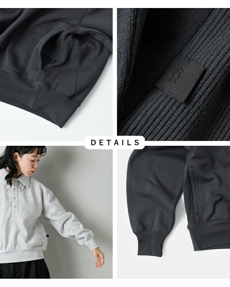 DAIWA PIER39(ダイワピア39)より、裏起毛 ヘビーウェイト スウェット スナップ プルオーバー “W’s TECH SWEAT SNAP PULLOVER” 。チンストラップを配したデザインがポイント。ゆったりとしたシルエットですが、袖口のリブをキツめに調整し釣りの際に邪魔にならないよう細かいフィッティングにこだわりました。裏起毛を強めにかけているのでフリースのような暖かさを感じることができます。アフターフィッシングに最適な一枚。様々なバリエーションで作成したブランドオススメのコレクションになります。